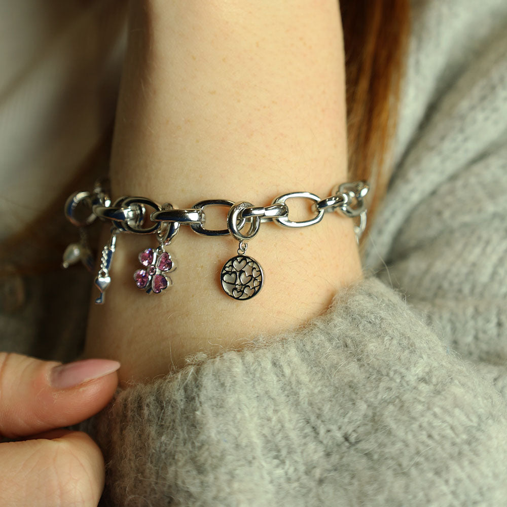 Magic Hearts Hænger Charm 6 mm Til Armbånd - Blankpoleret Sterling Sølv m. Perlemor