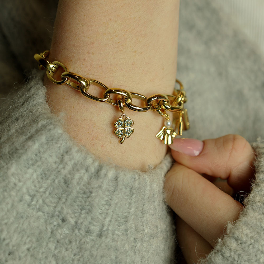 Lucky Clover - Hænger Charm 4 mm Til Armbånd - Forgyldt Sterling Sølv m. 20 Cubic Zirkonia