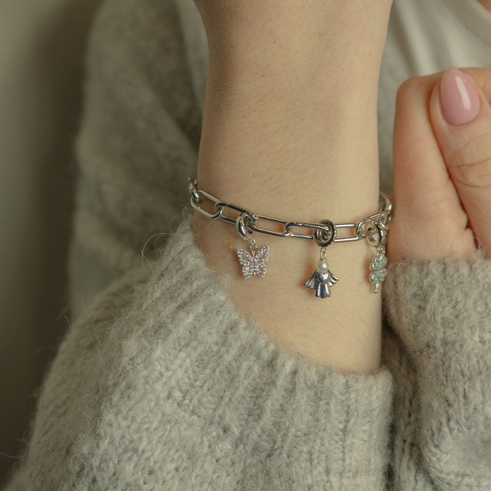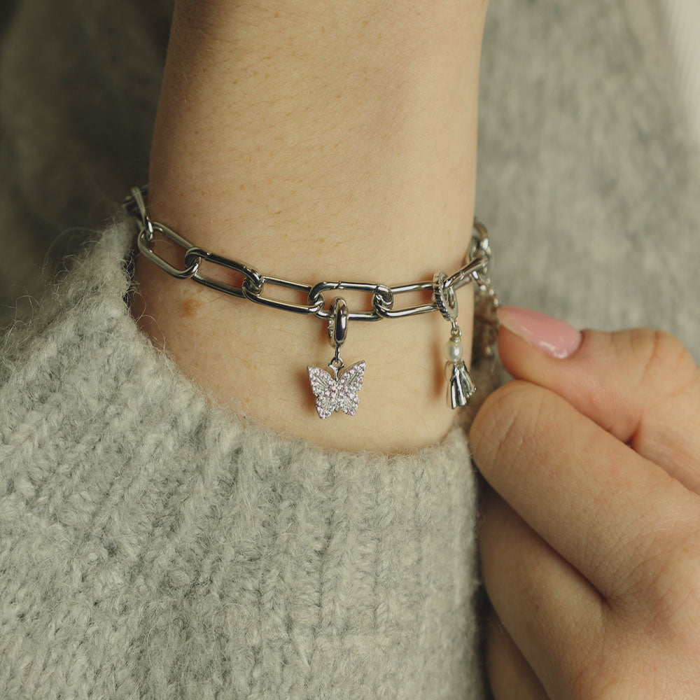 Sparkling Butterfly - Hænger Charm 4 mm Til Armbånd - Blankpoleret Sterling Sølv m. 20 Cubic Zirkonia