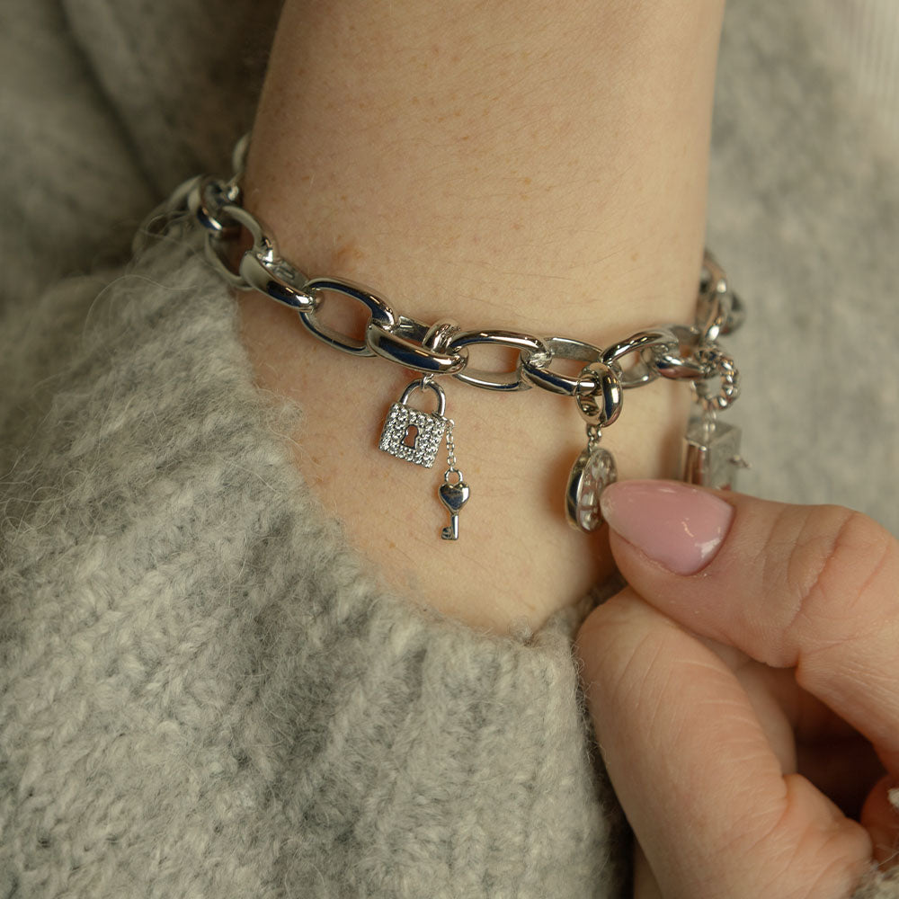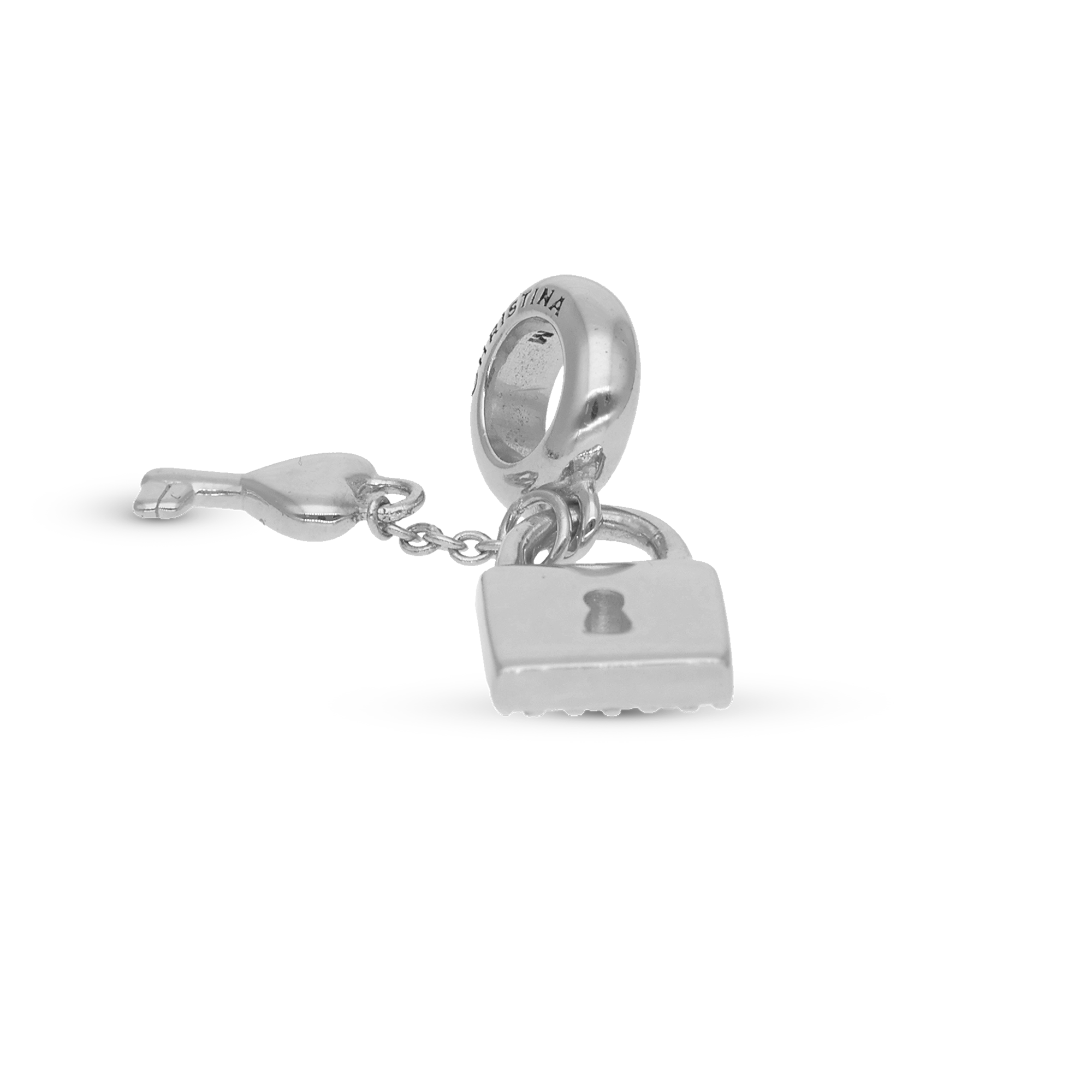 Unlock my Heart - Hænger Charm 4 mm Til Armbånd - Blankpoleret Sterling Sølv m. 24 Cubic Zirkonia