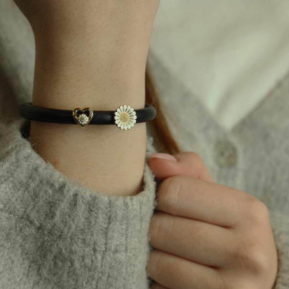 Marguerit 13mm - Charm 6 mm til Classic Læderarmbånd - Forgyldt Sterling Sølv