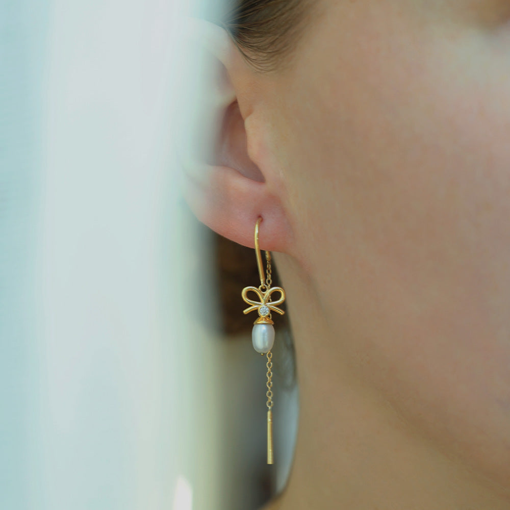 Celebrate Hænge Øreringe - Blankpoleret Forgyldt Sterling Sølv m. 2 Hvide Cubic Zirkonia