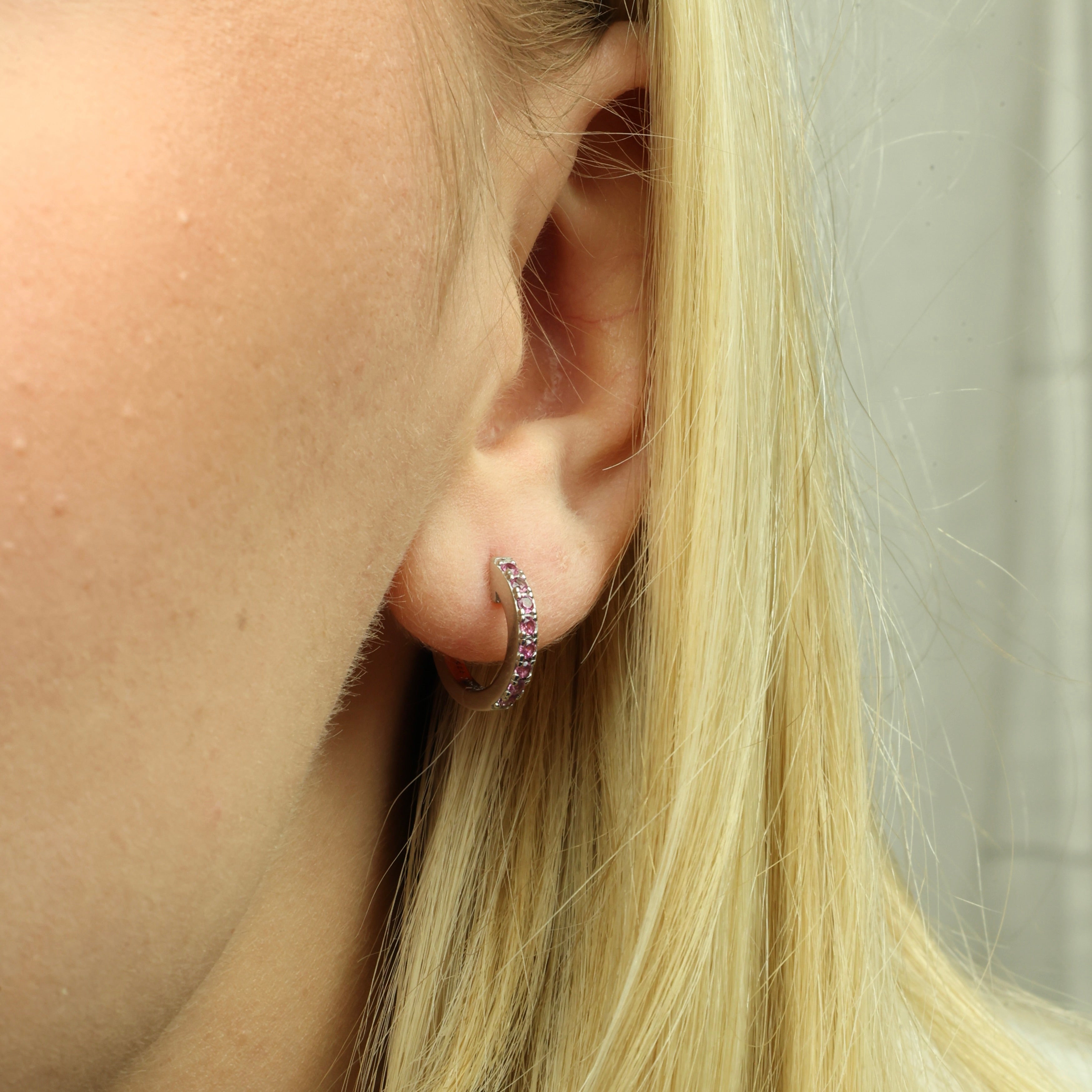 Pink Circles Hoops - Sterling Sølv m. 16 Pinke Cubic Zirkonia