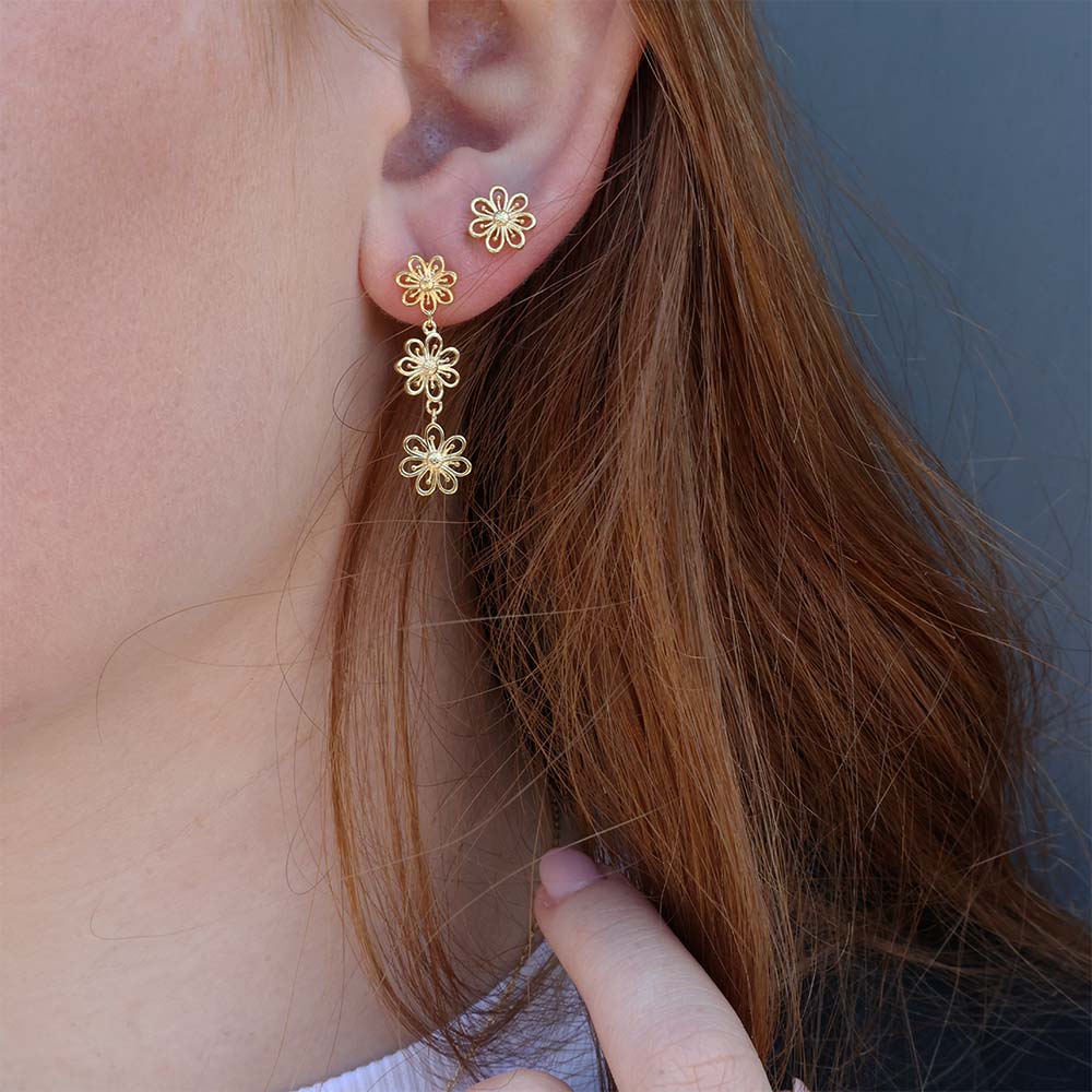 Flower Heaven Ørestikker - Blankpoleret Forgyldt Sterling Sølv