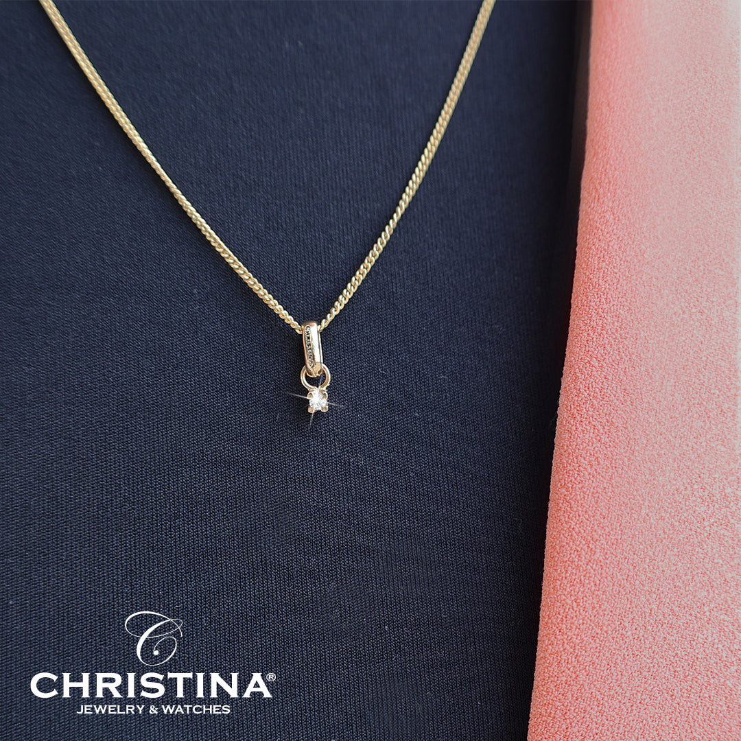 På CHRISTINAS elegante vedhæng er der monteret en smuk 0,10 labgrown diamant, som fastholdes af fire grabber.