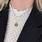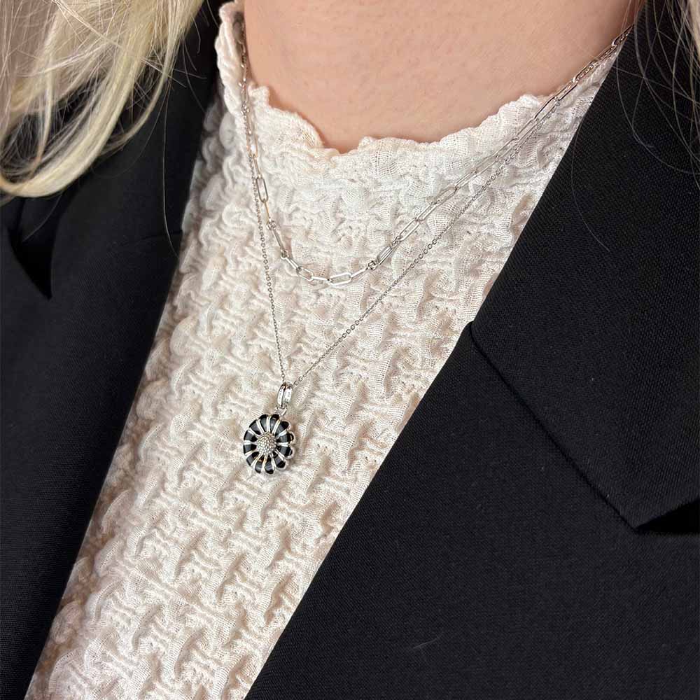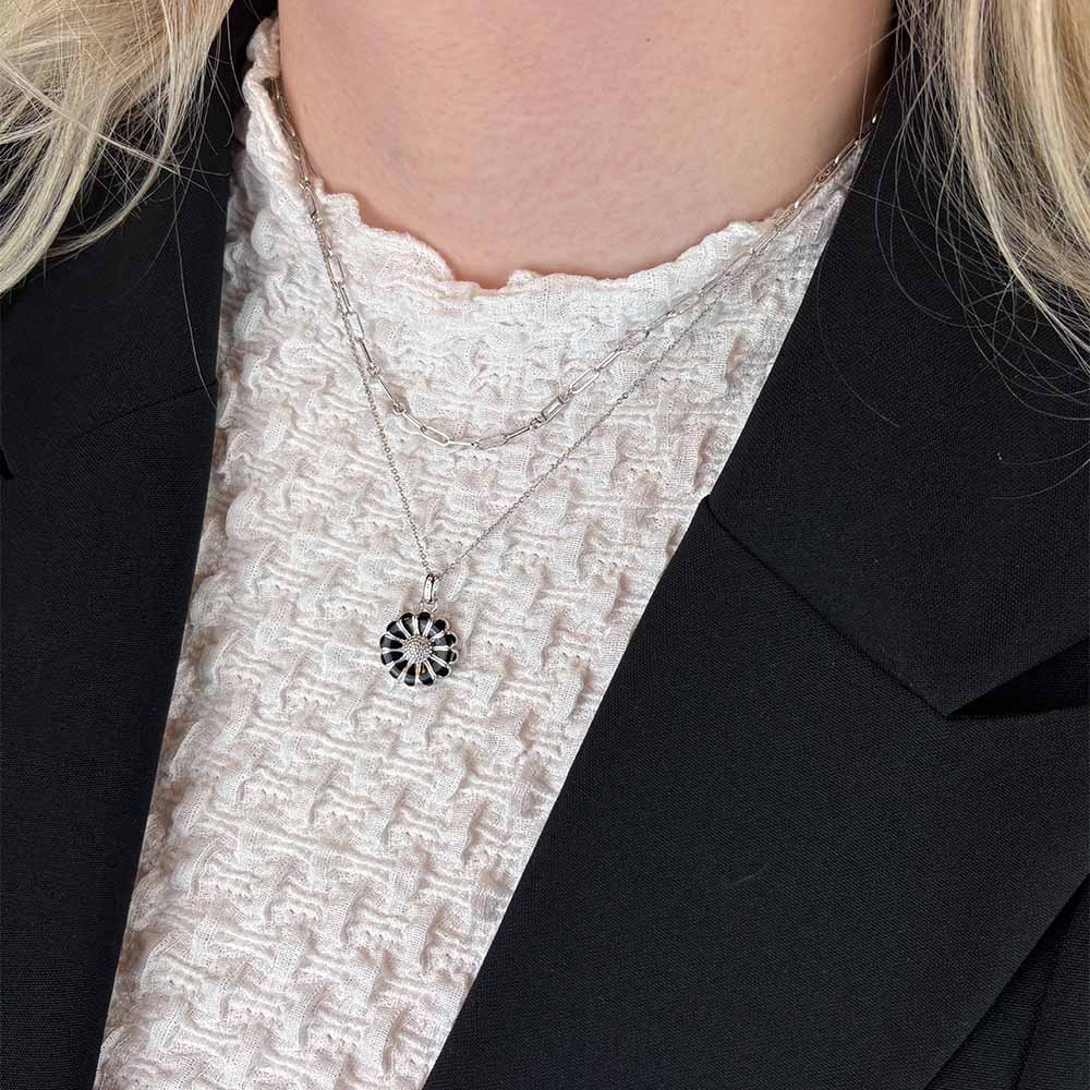 16 mm Sort Marguerit Vedhæng - Sterling Sølv m. 7 Hvide