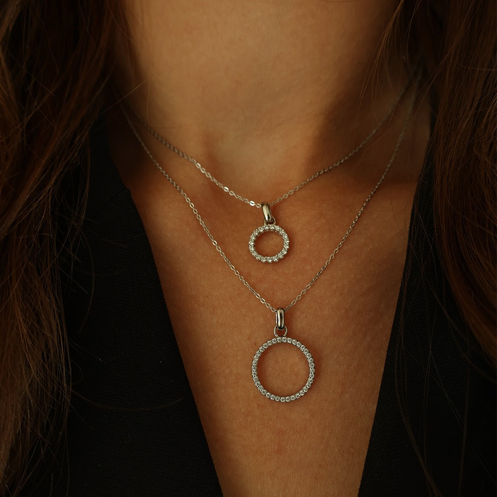Big Sparkly Circle Vedhæng - Blankpoleret Sterling Sølv m. 36 Hvide Cubic Zirkonia