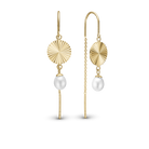 Ørehængerne er udformet som solens stråler og har en ferskvandsperle, der hænger ned fra midten som et smukt og delikat element.