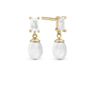 Pearl Baguette Ørestikker - Blankpoleret Forgyldt Sterling Sølv m. 4 Hvide Ferskvandsperler
