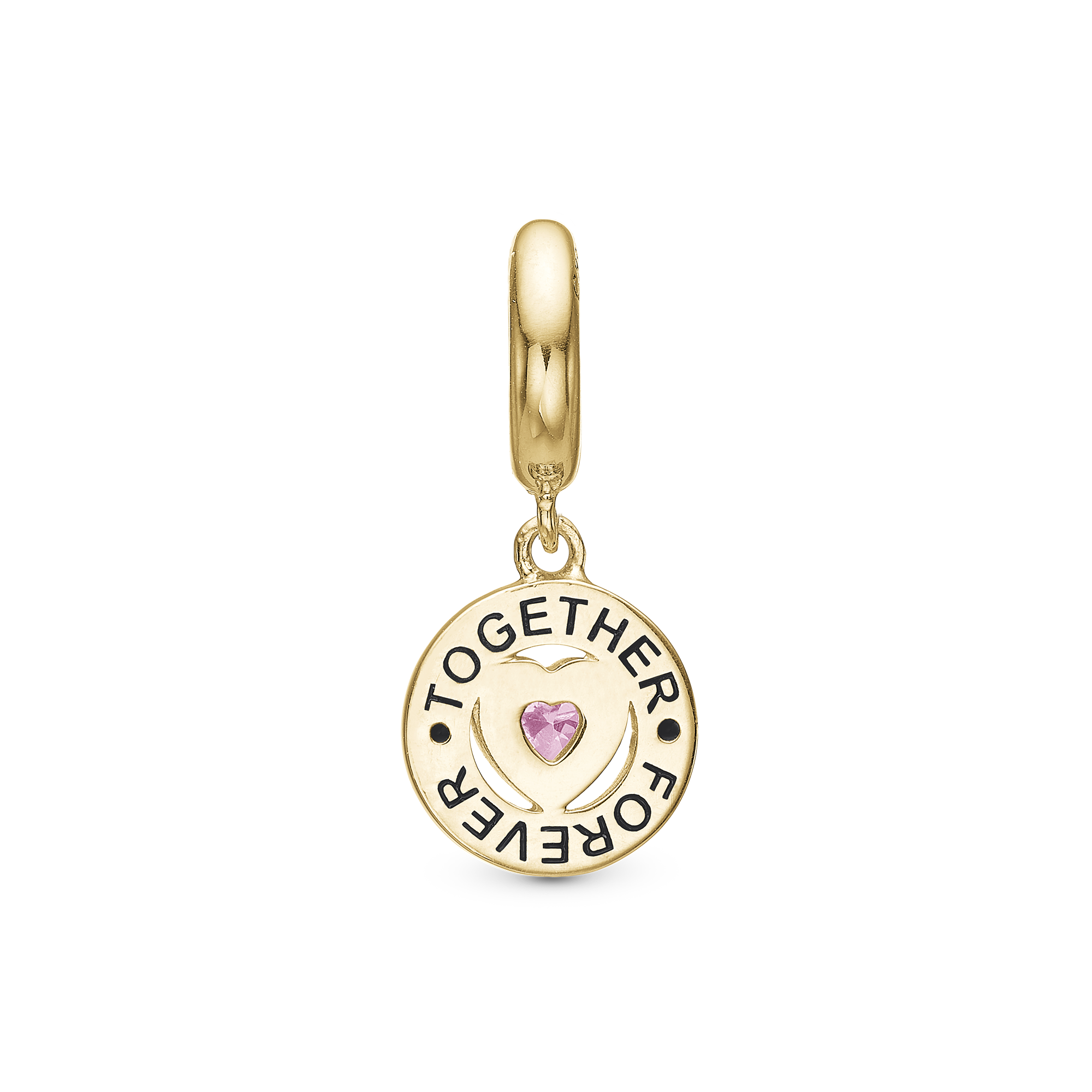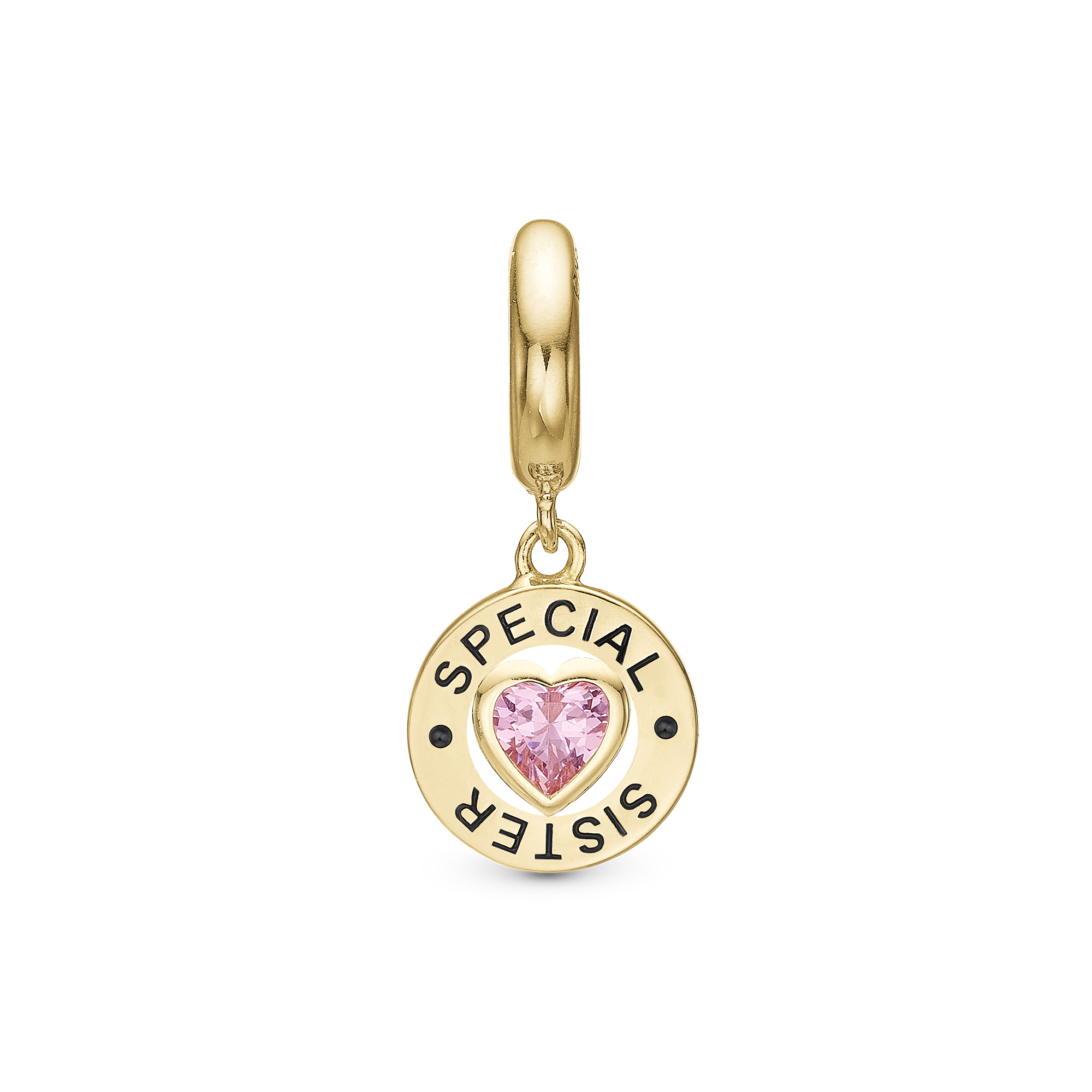Special Sister charm som er udarbejdet i 18 karat forgyldt sterling sølv, har en flot hjertesleben Pink Turmalin, og en ingravering med ordene Special Sister på forsiden og Together Forever på bagsiden. Special Sister er den perfekte gave til din eller en søster du kender, da den symbolisere evig søsterkærlighed. Det kunne også være en gaveidé til en tæt veninde du holder af. Special Sister charm passer til Classic og 3-string læderarmbånd, men også som vedhæng til dine halskæder.