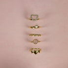 Unik hjertering designet med fem hjerter i forskellige størrelser, hvor det største hjerte i midten har en ægte topas. Smuk at kombinere sammen med vores Diamond Dust.