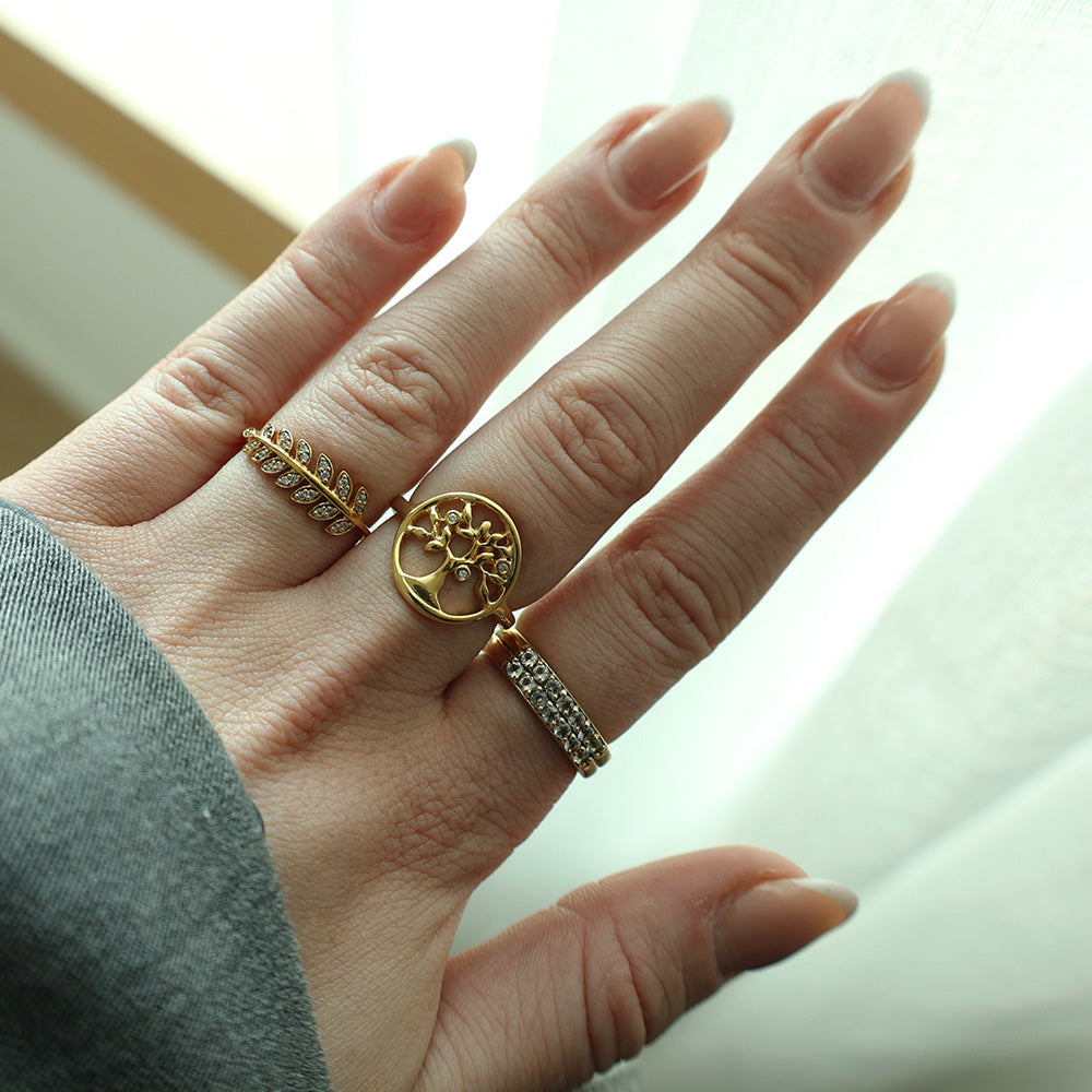 Forest Leaves Ring - Blankpoleret Forgyldt Sterling Sølv m. 15 Hvide Cubic Zirkonia