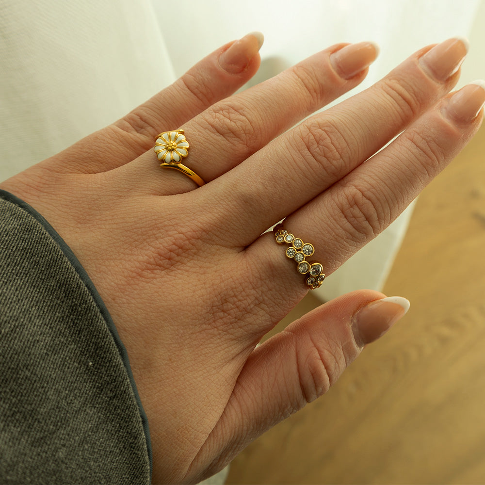 Bubbles Ring - Blankpoleret Forgyldt Sterling Sølv m. 15 Hvide Cubic Zirkonia