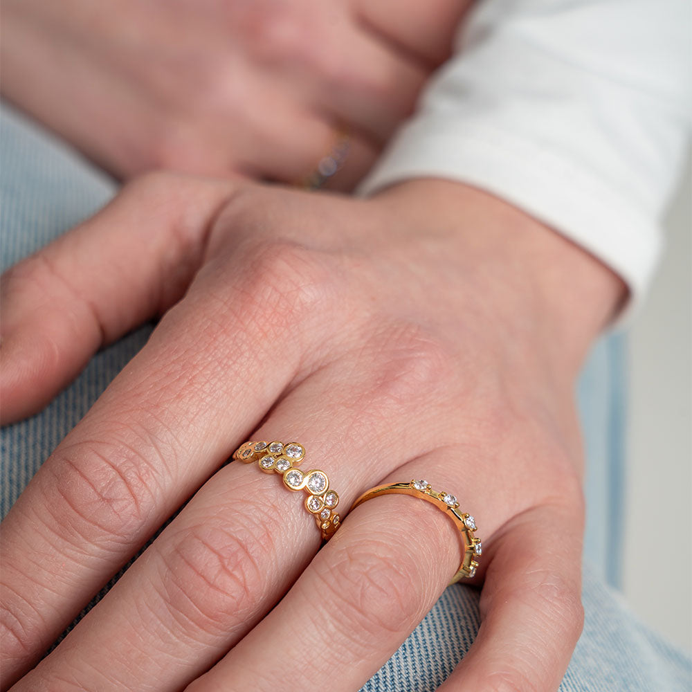 Vores Bubbles-ring er designet med bløde, organiske former, der leger med lyset og tilføjer et legende twist til dit look.