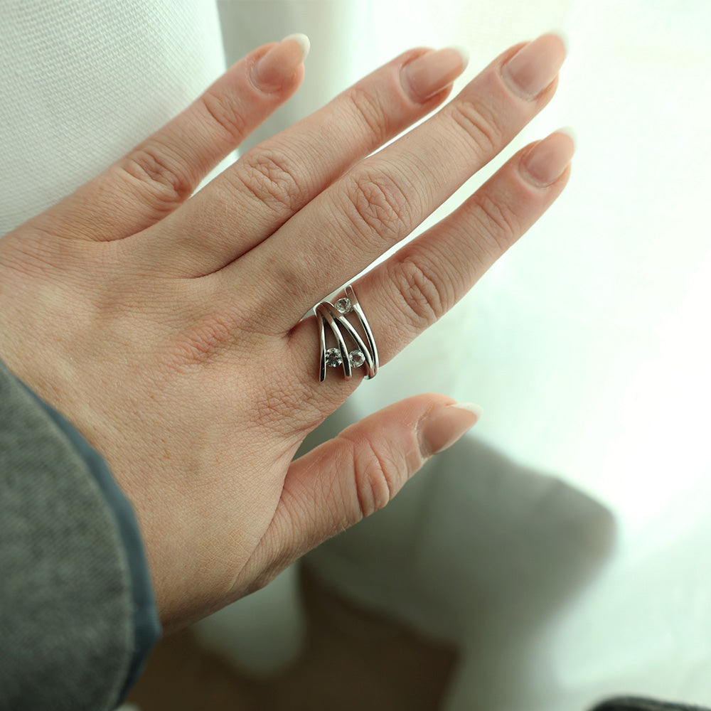 Balance Love Ring - Blankpoleret Sterling Sølv m. 3 Hvide Topas