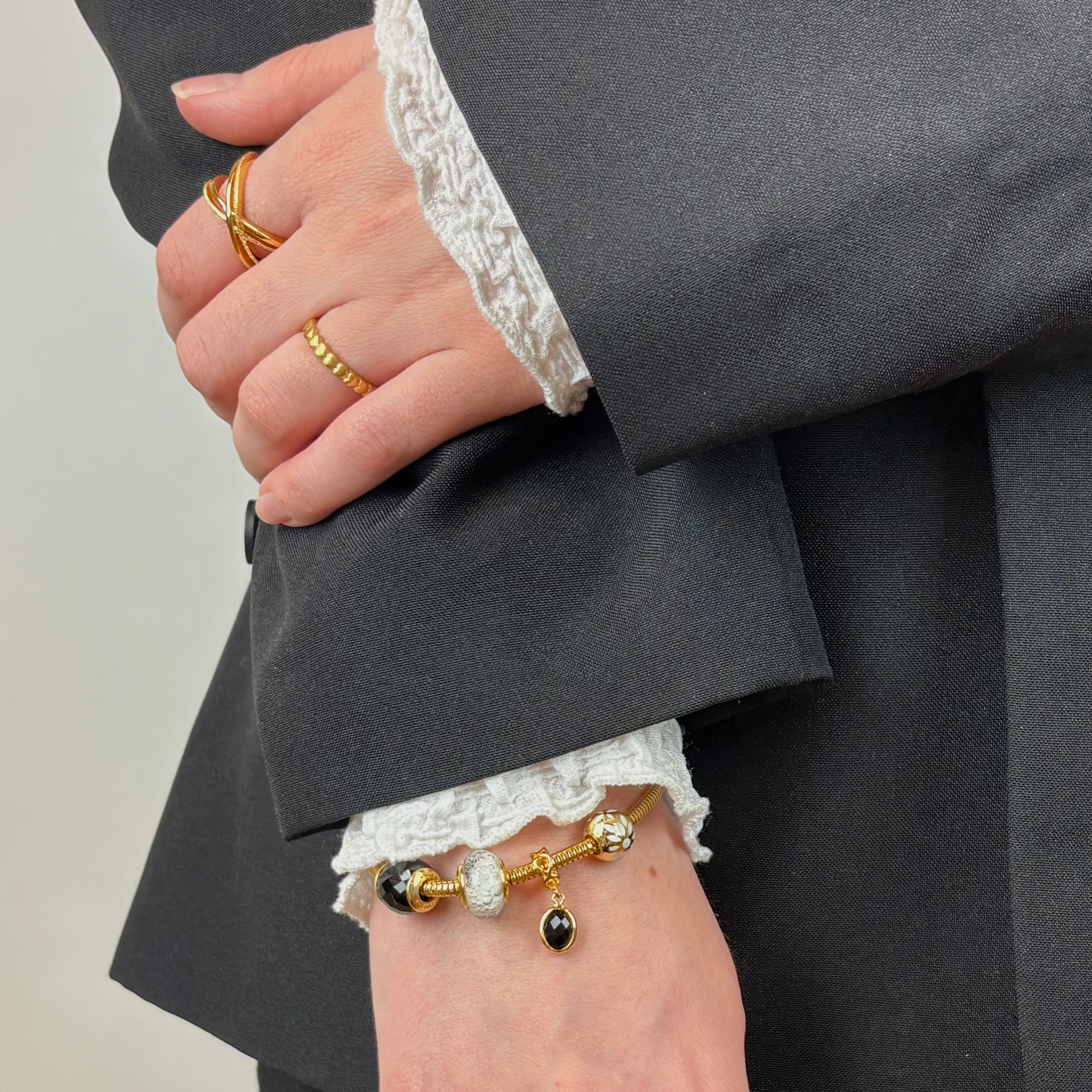 Rengør skånsomt med en tør pudseklud for at bevare guldbelægningen, da denne vil blive slidt over tid. Overvej genforgyldning, hvis smykket mister sin glans