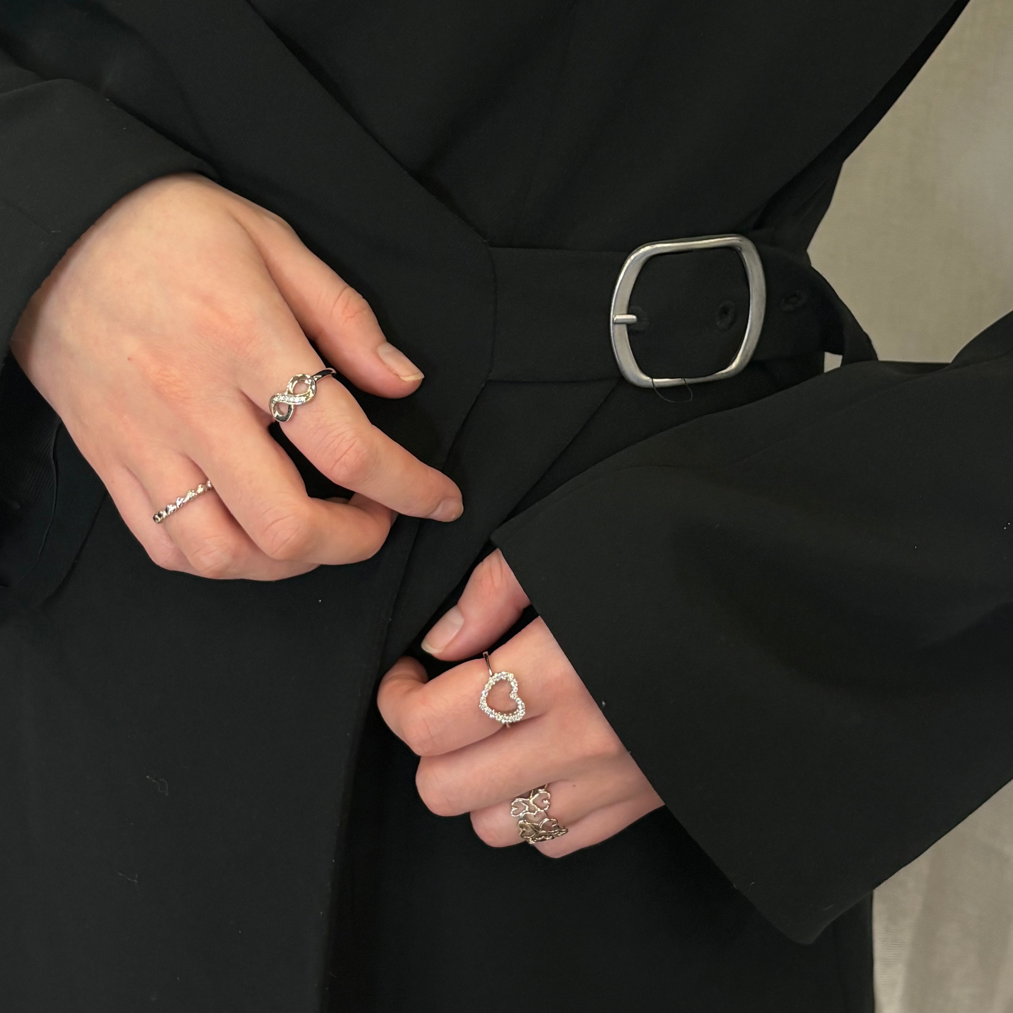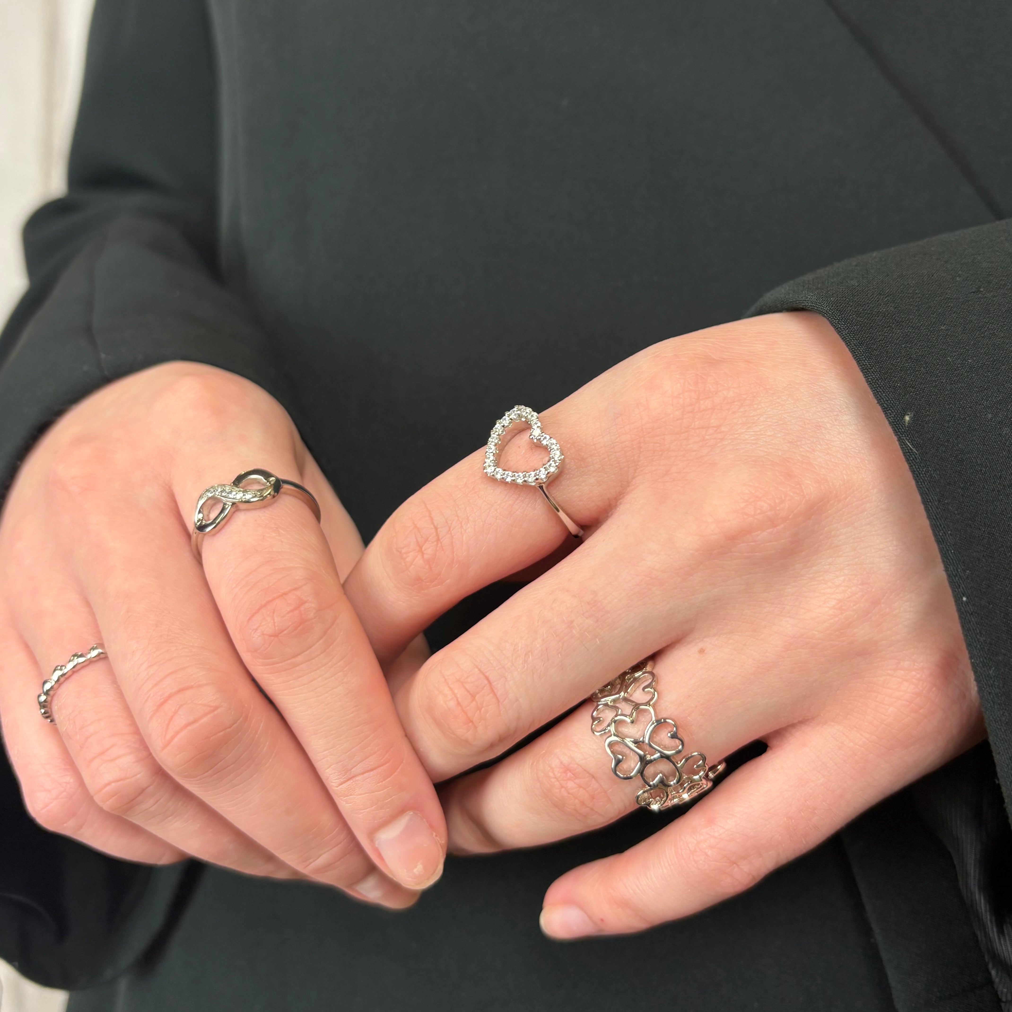 Sparkly Heart Ring - Blankpoleret Sterling Sølv m. 20 Hvide Cubic Zirkonia