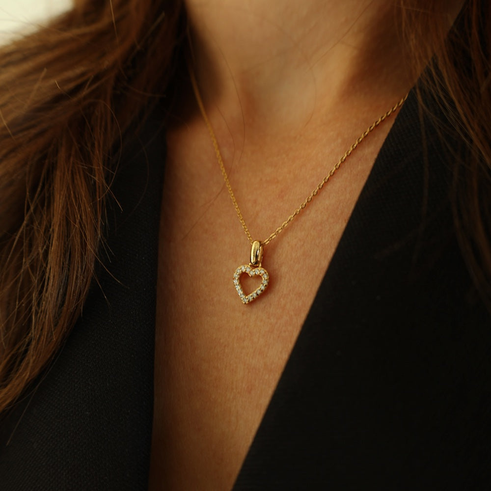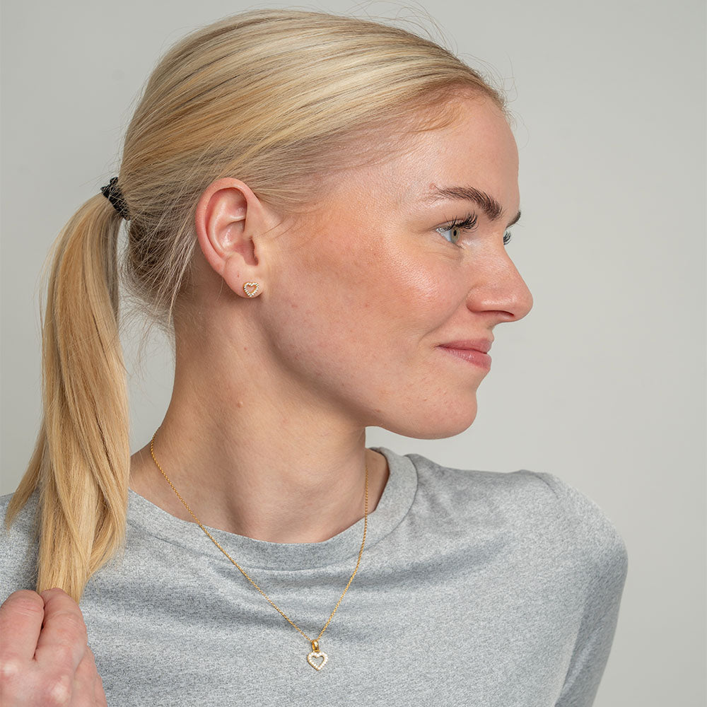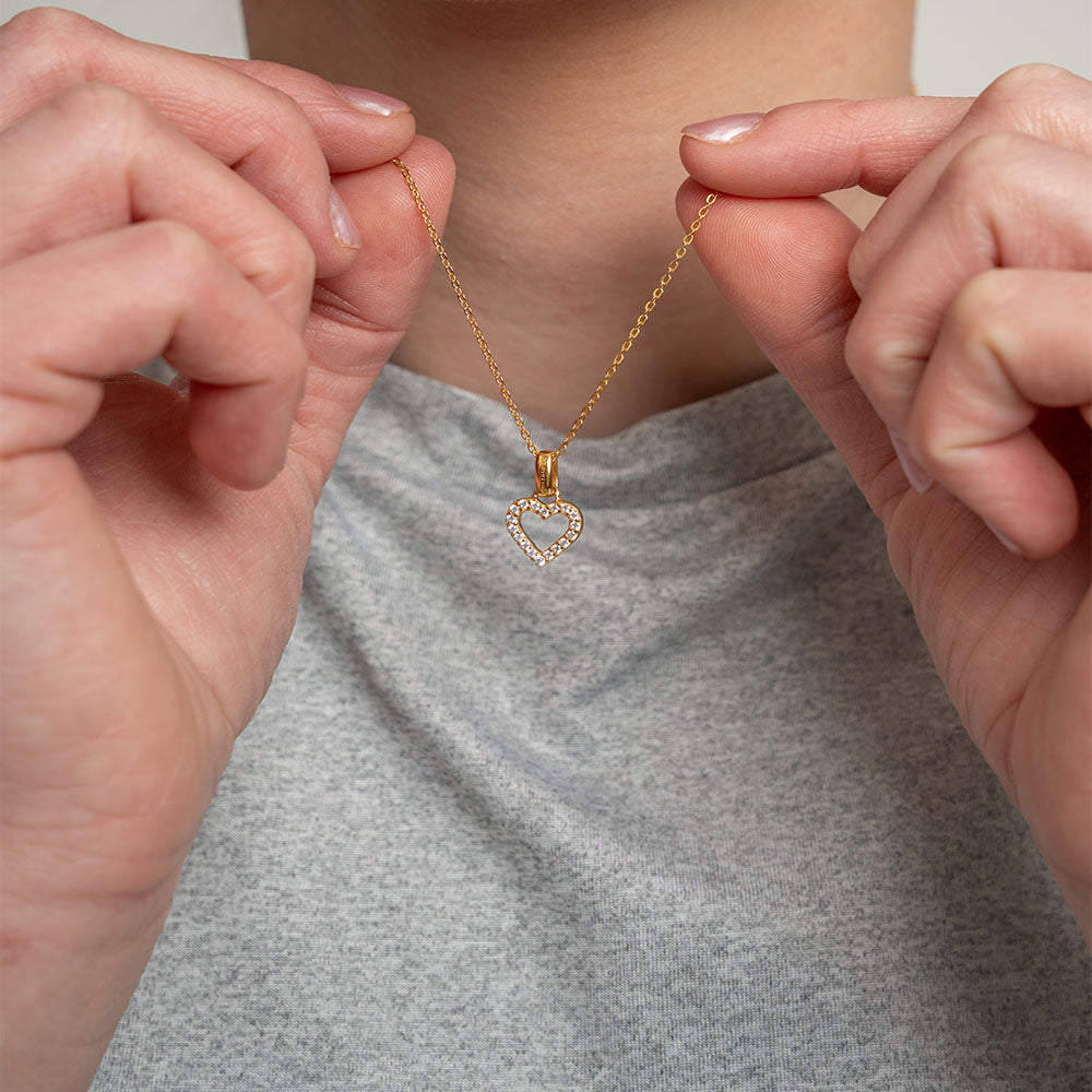 Shimmery Heart Vedhæng - Blankpoleret Forgyldt Sterling Sølv m. 18 Hvide Cubic Zirkonia
