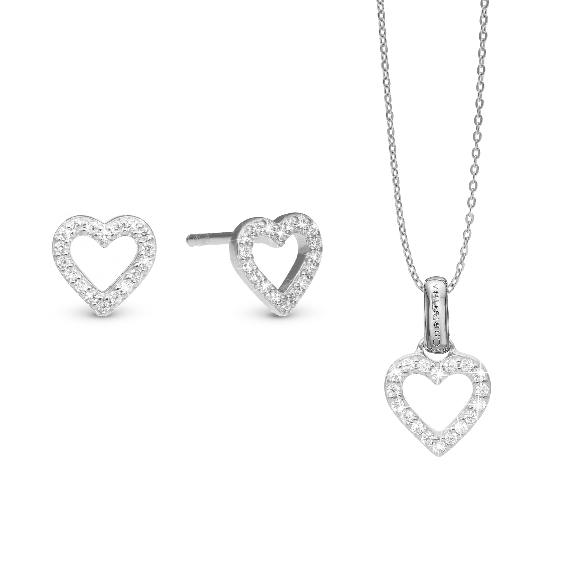 Shimmery Heart Smykkesæt - Sterling Sølv m. Cubic Zirkonia