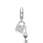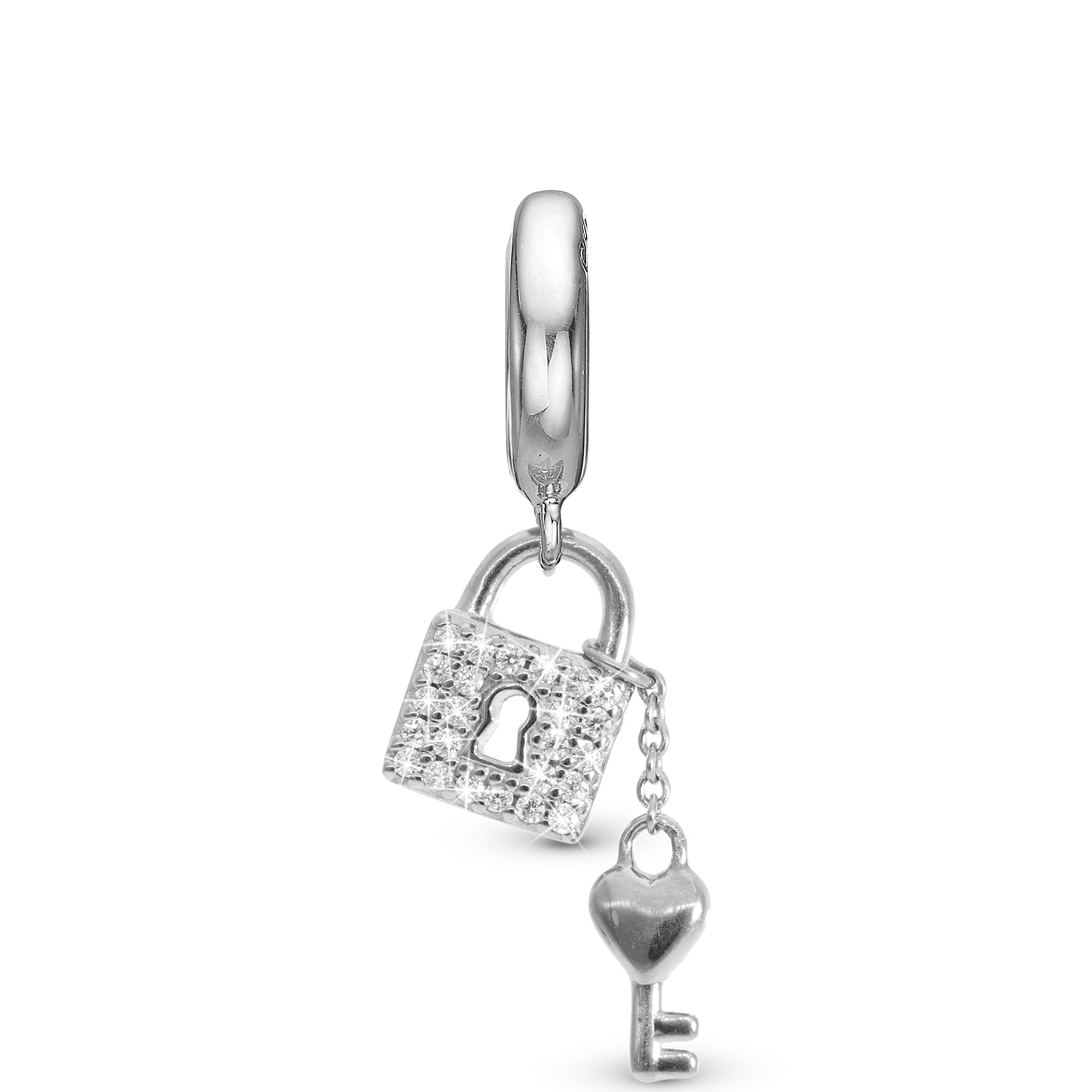 Unlock my Heart Hænger Charm 6 mm Til Armbånd - Blankpoleret Sterling Sølv m. 24 Hvide Cubic Zirkonia
