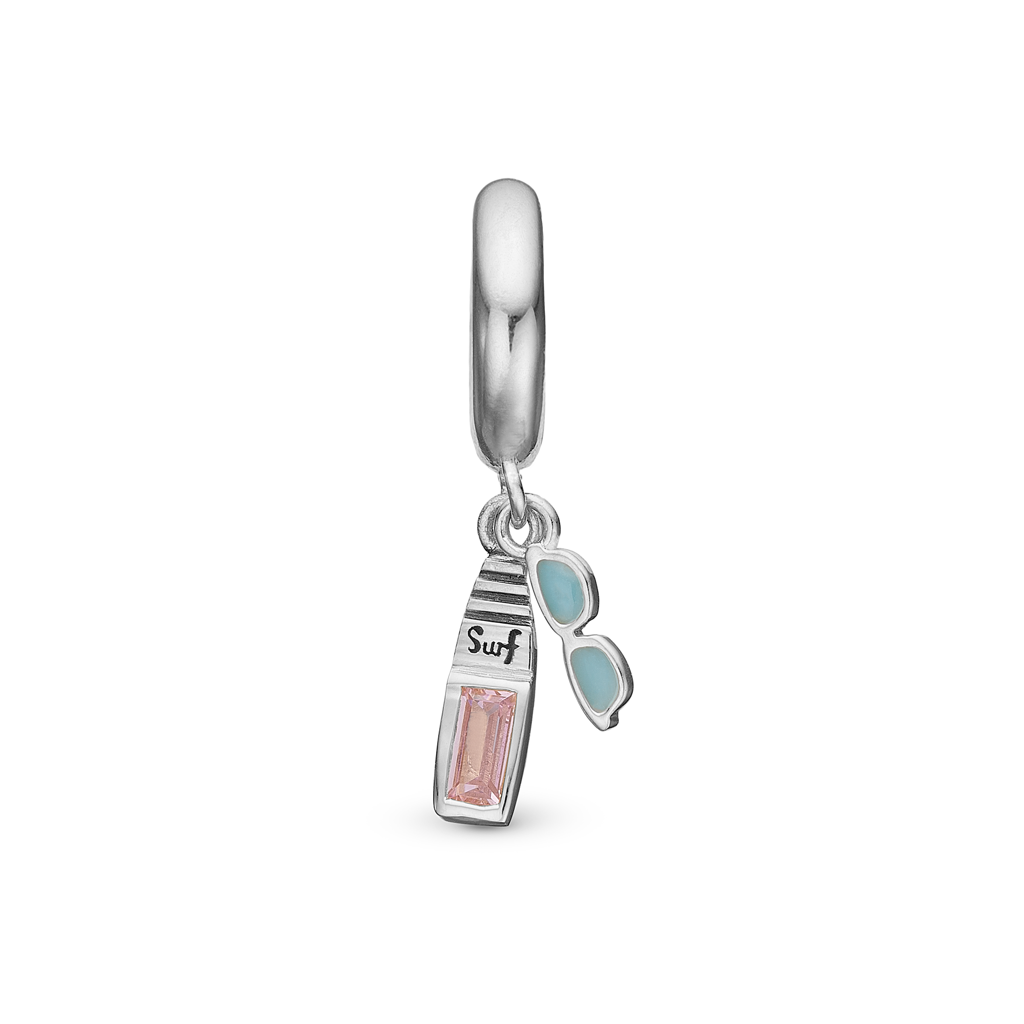 Surfboard Limited Edition Hænger Charm 6 mm Til Armbånd - Blankpoleret Sterling Sølv m. 1 Cubic Zirkonia