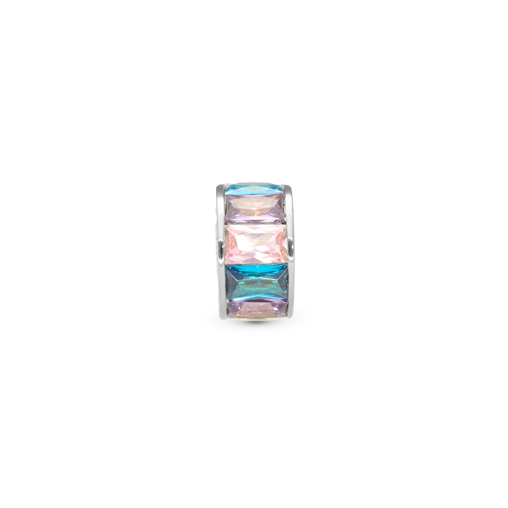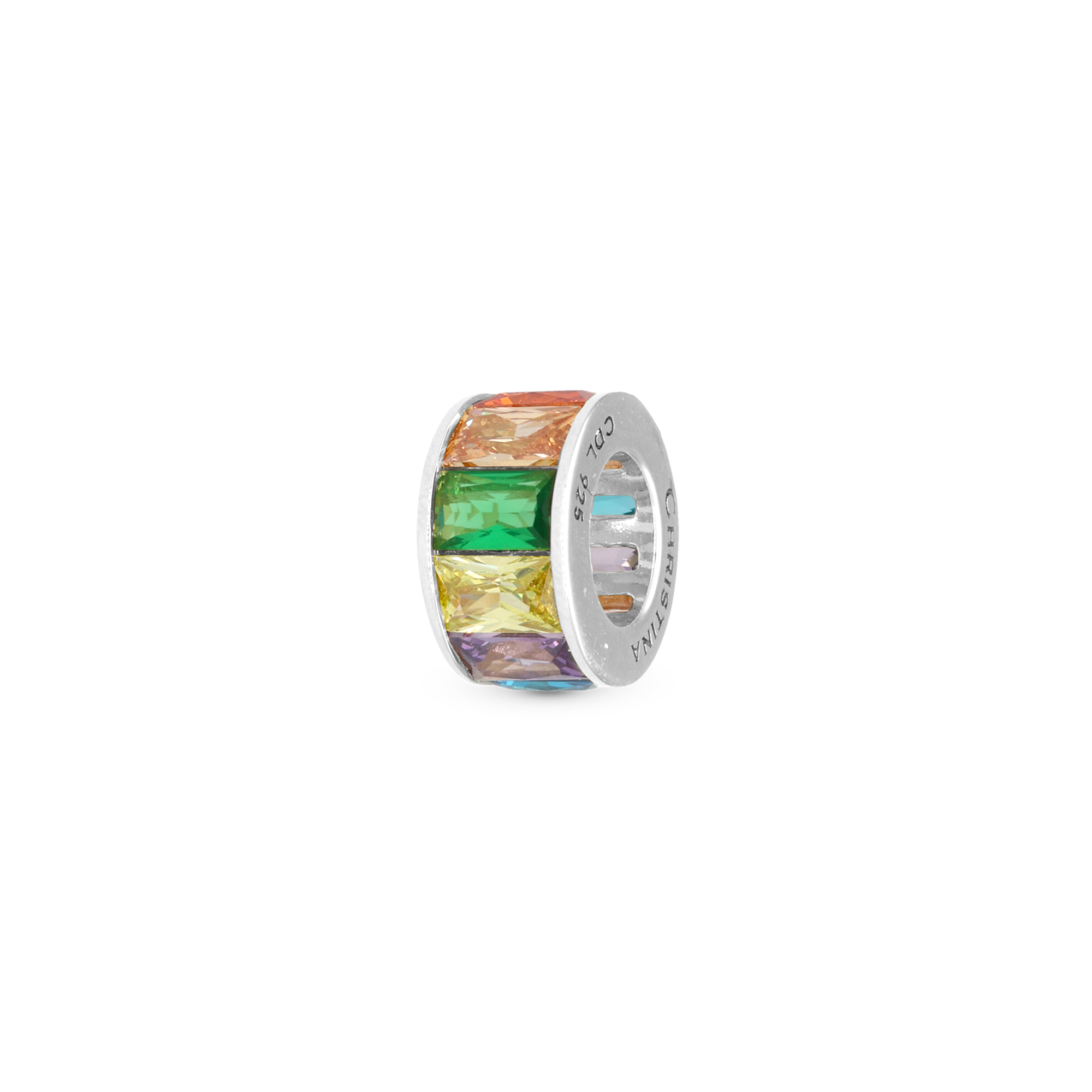 Multi color Baguette Charm 6 mm til Classic Læderarmbånd - Blankpoleret Sterling Sølv m. 10 Multi color Cubic Zirkonia