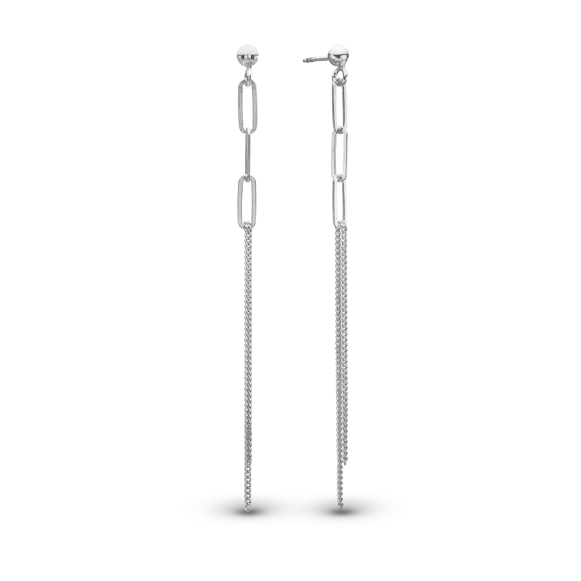 CHRISTINA Joined ørehængere er udarbejdet i 925 sterling sølv. Kæde øreringene er designet med en større kæde der slutter i bunden med en tynd kæde. De er til dig, der er til det det simple look, men også til dig, der leder efter en perfekt gaveidé til din mor eller hende du holder af. Match de fine ørehængere med den matchende halskæde og armbånd.