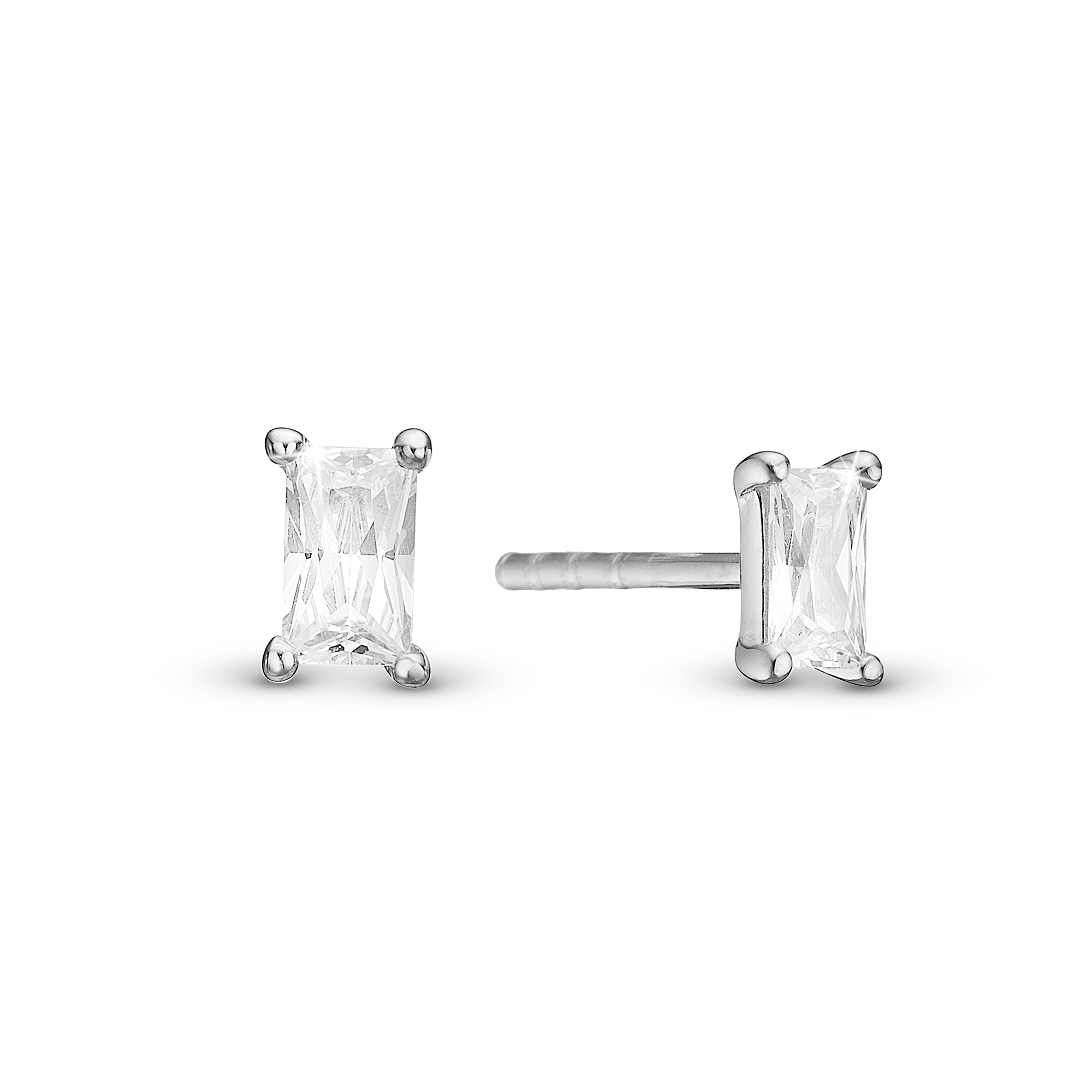 White Baguette Ørestikker - Blankpoleret Sterling Sølv m. 2 Hvide Cubic Zirkonia