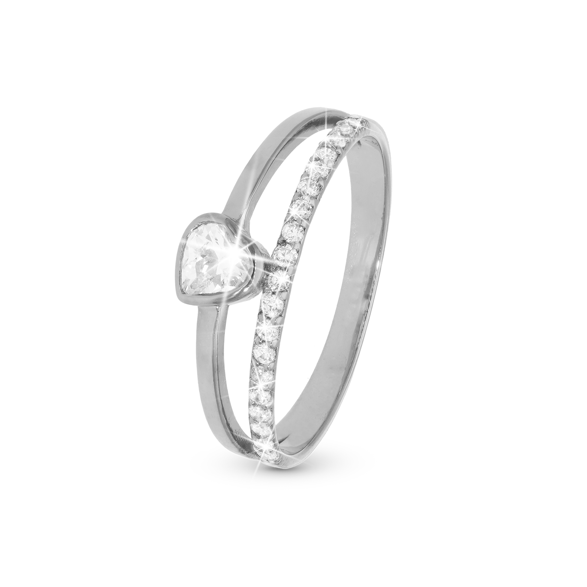 Design: Dobbelt ring med 20 CZ + 1 hjerteformet CZ