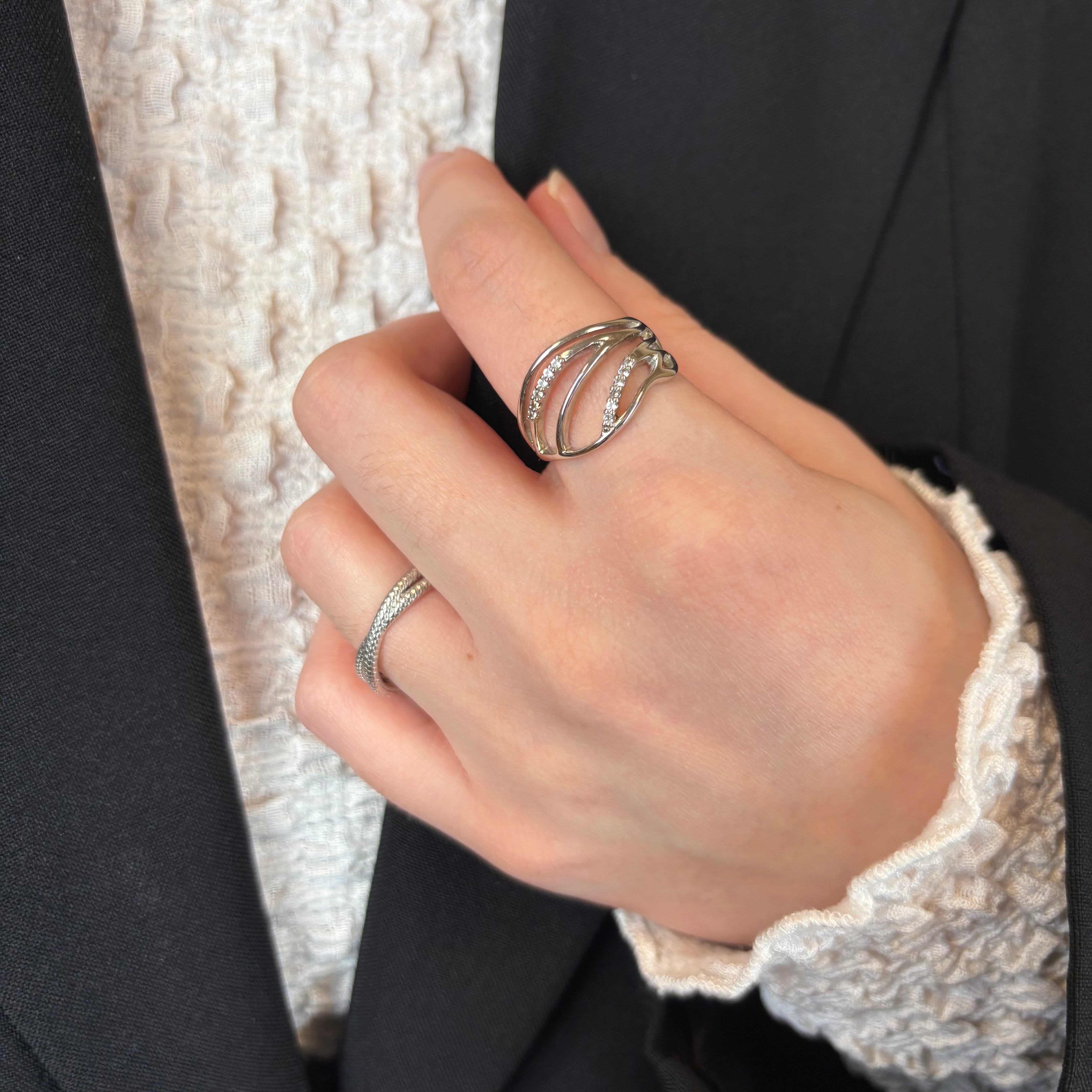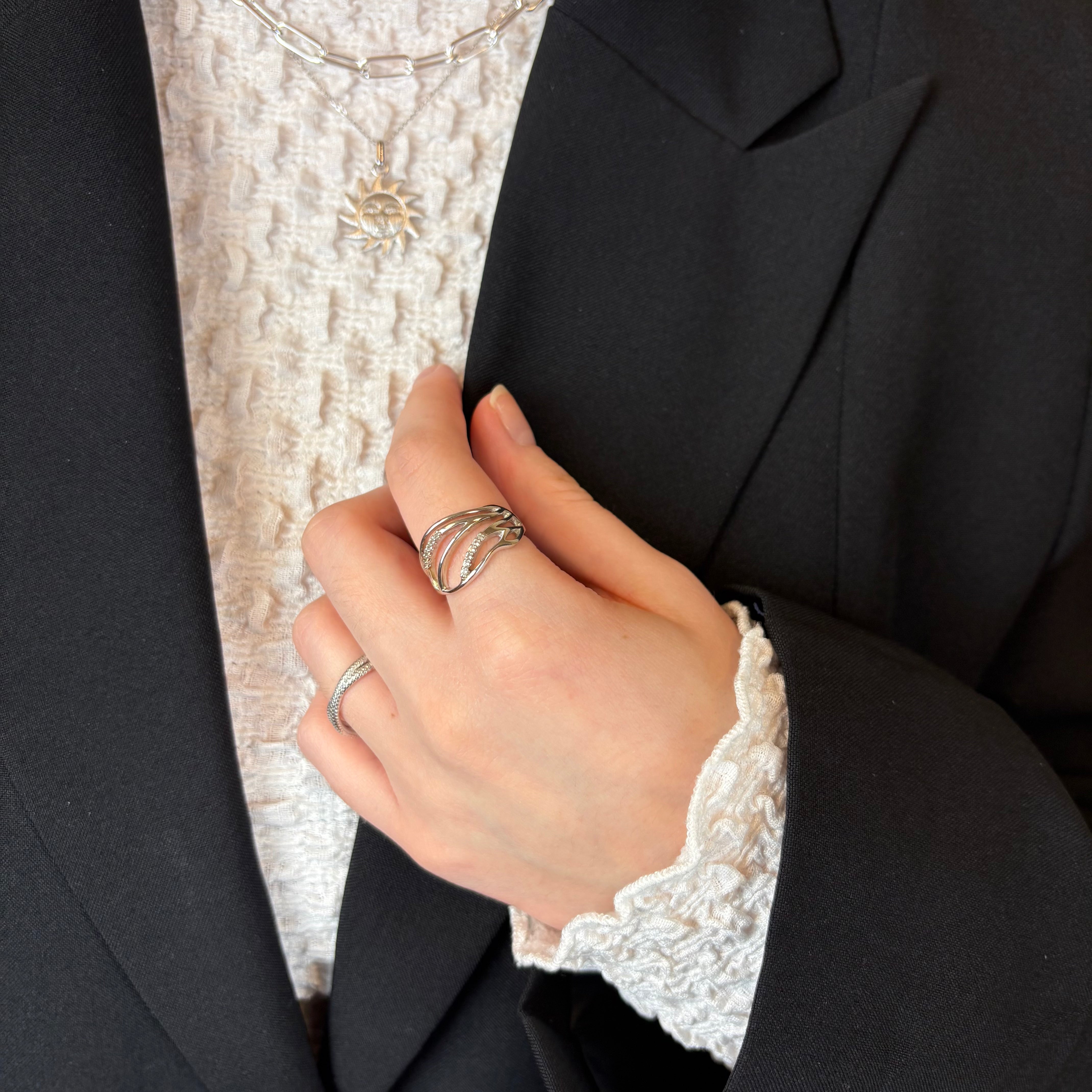 Energy Ring - Blankpoleret Sterling Sølv m. 12 Hvide Topas