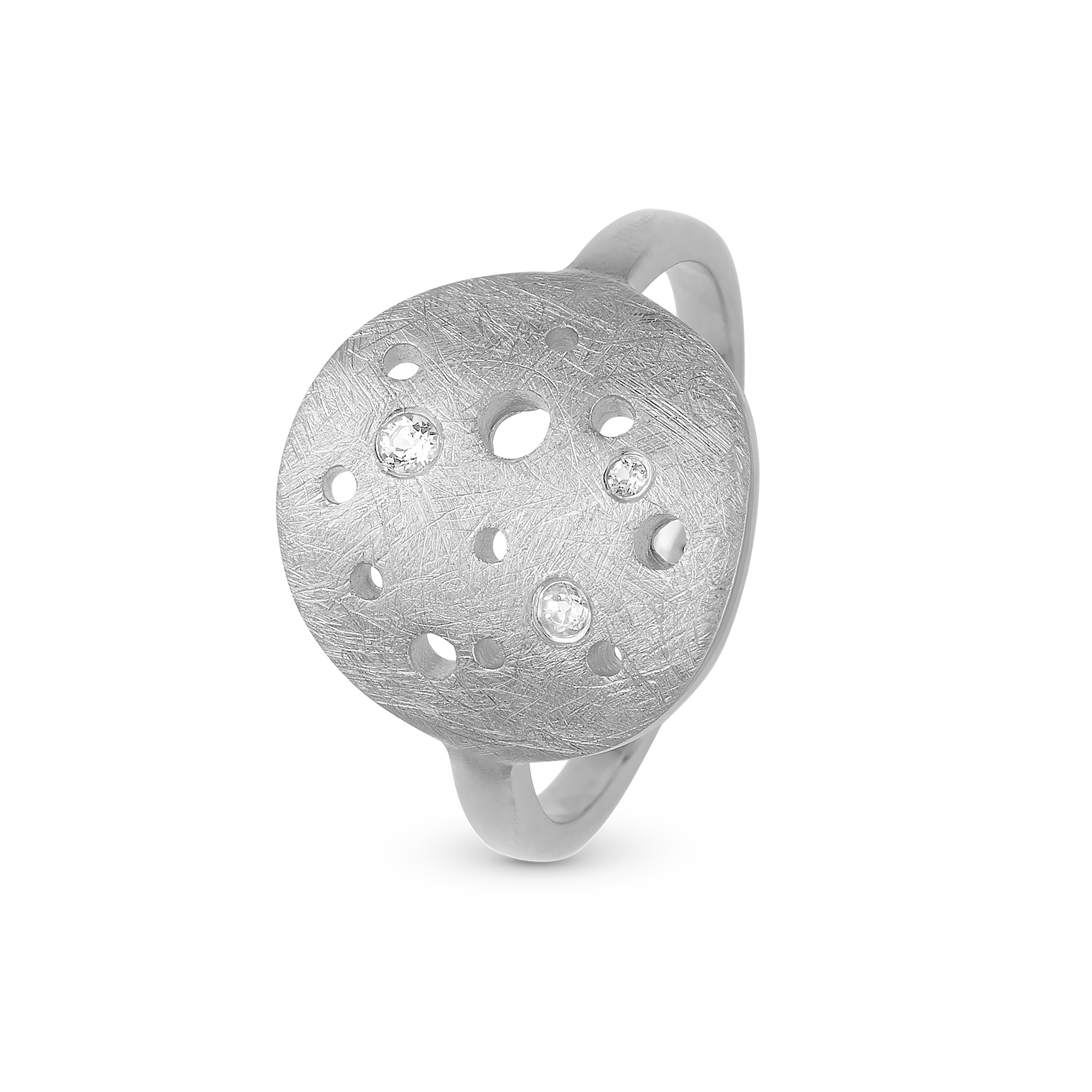 The Moon Ring - Børstet Sterling Sølv m. 3 Hvide Topas