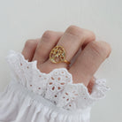 Tree of Life Ring - Blankpoleret Forgyldt Sterling Sølv m. 3 Hvide Topas