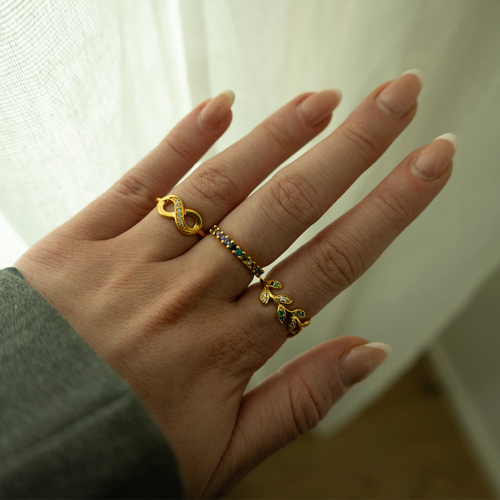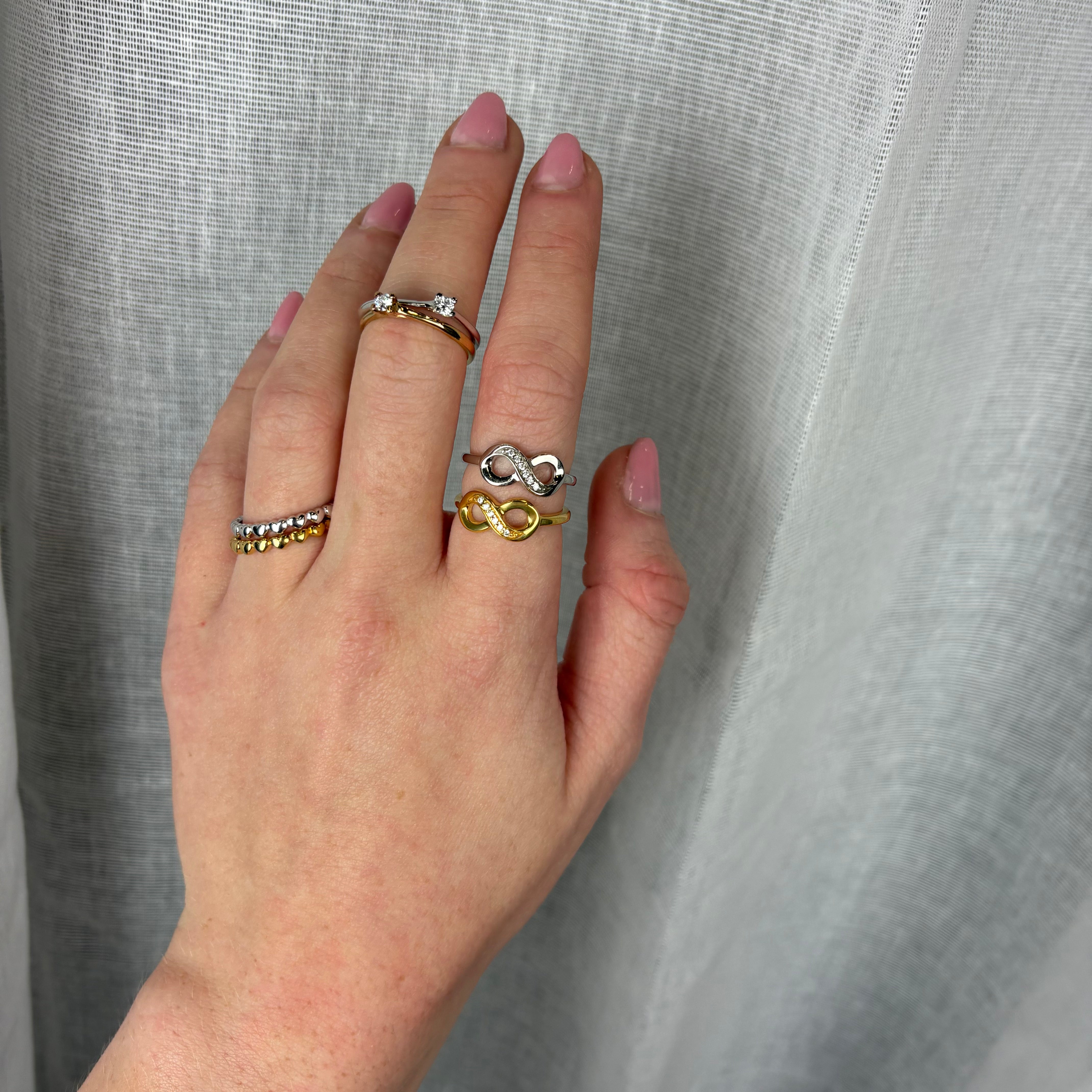 Sterlingsølv ring med det unikke eternity symbol, som er dekoreret med seks ægte topaser. Smukt budskab til en smuk ring.