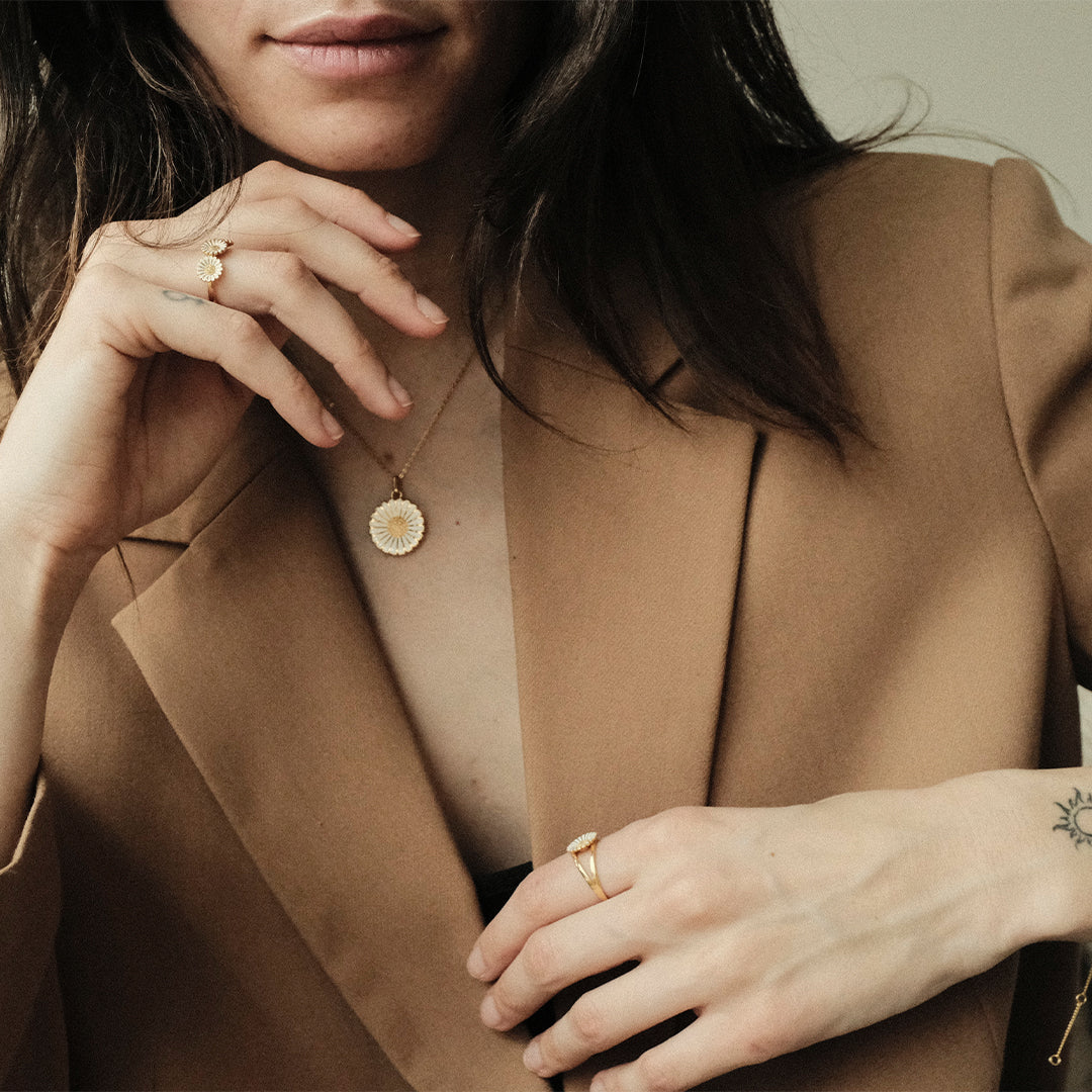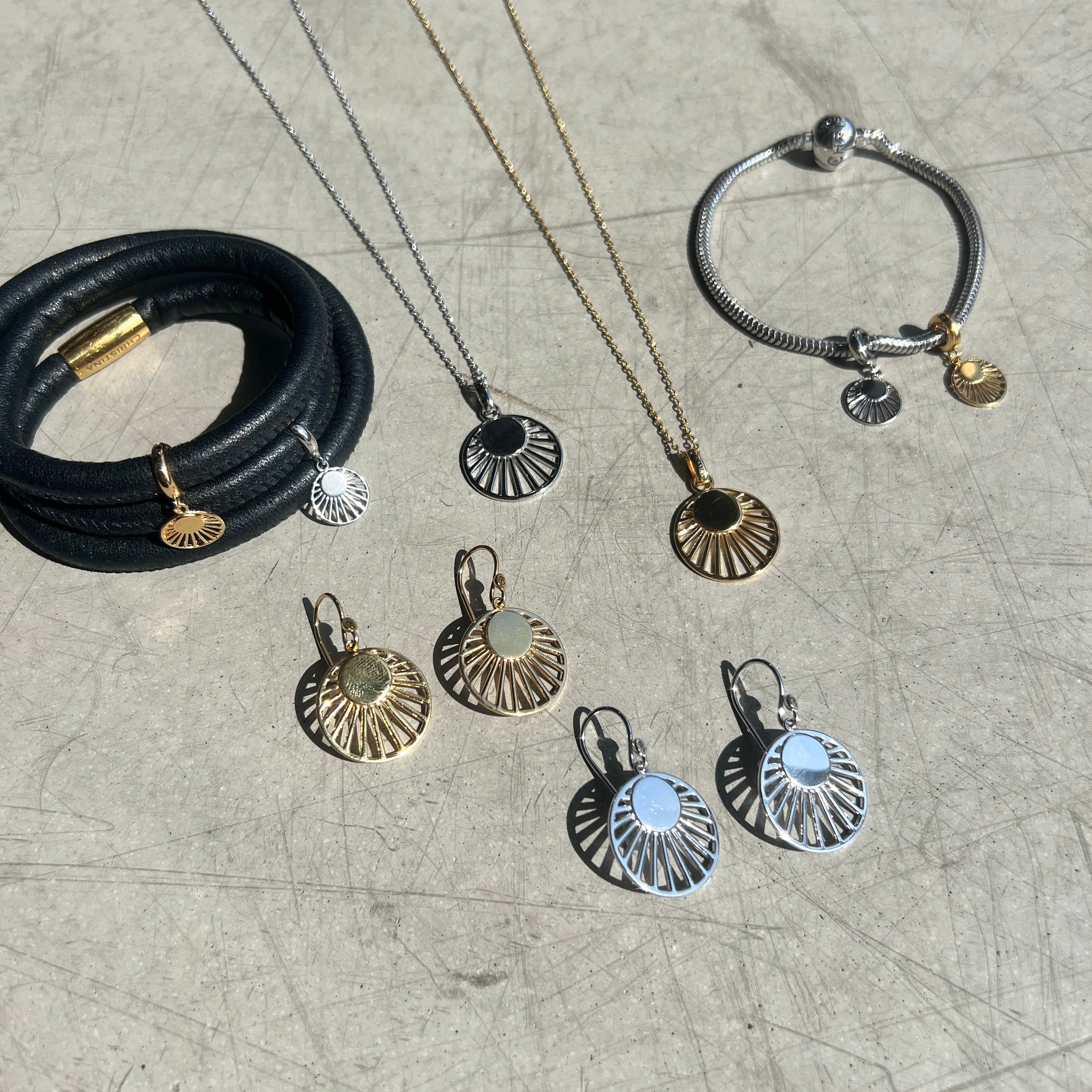Sun & Moon er med en smuk barok perle og en sol og måne, begge prydet med smukke cubic zirconia sten. Smykket symboliserer harmonien mellem modsætninger, det maskuline og feminine, dag og nat. Solen repræsenterer vitalitet, energi og styrke, mens månen symboliserer ro, intuition og mysterium.