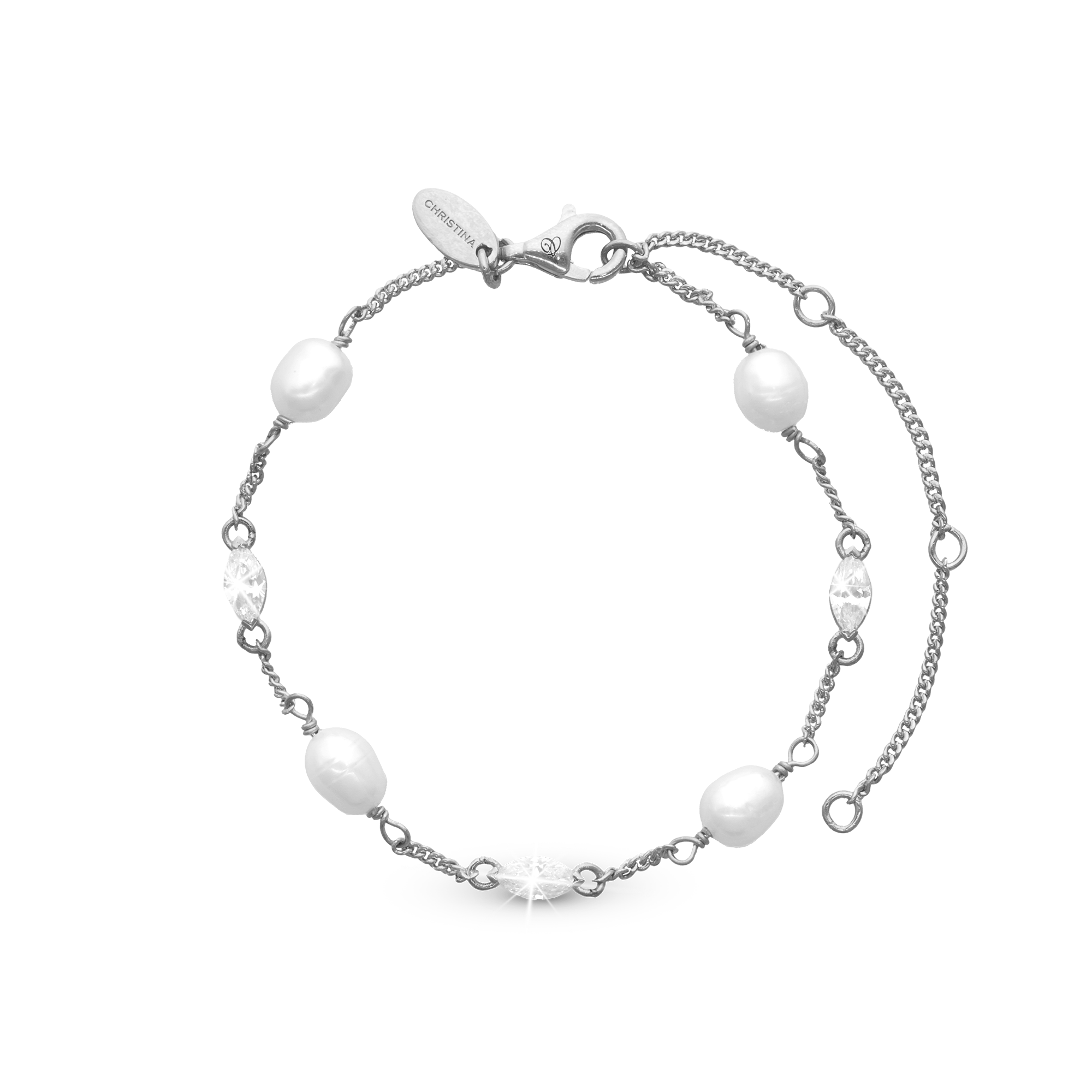 Design: 4 ferskvandsperler og 3 zirkonia, forbundet af fine kæder