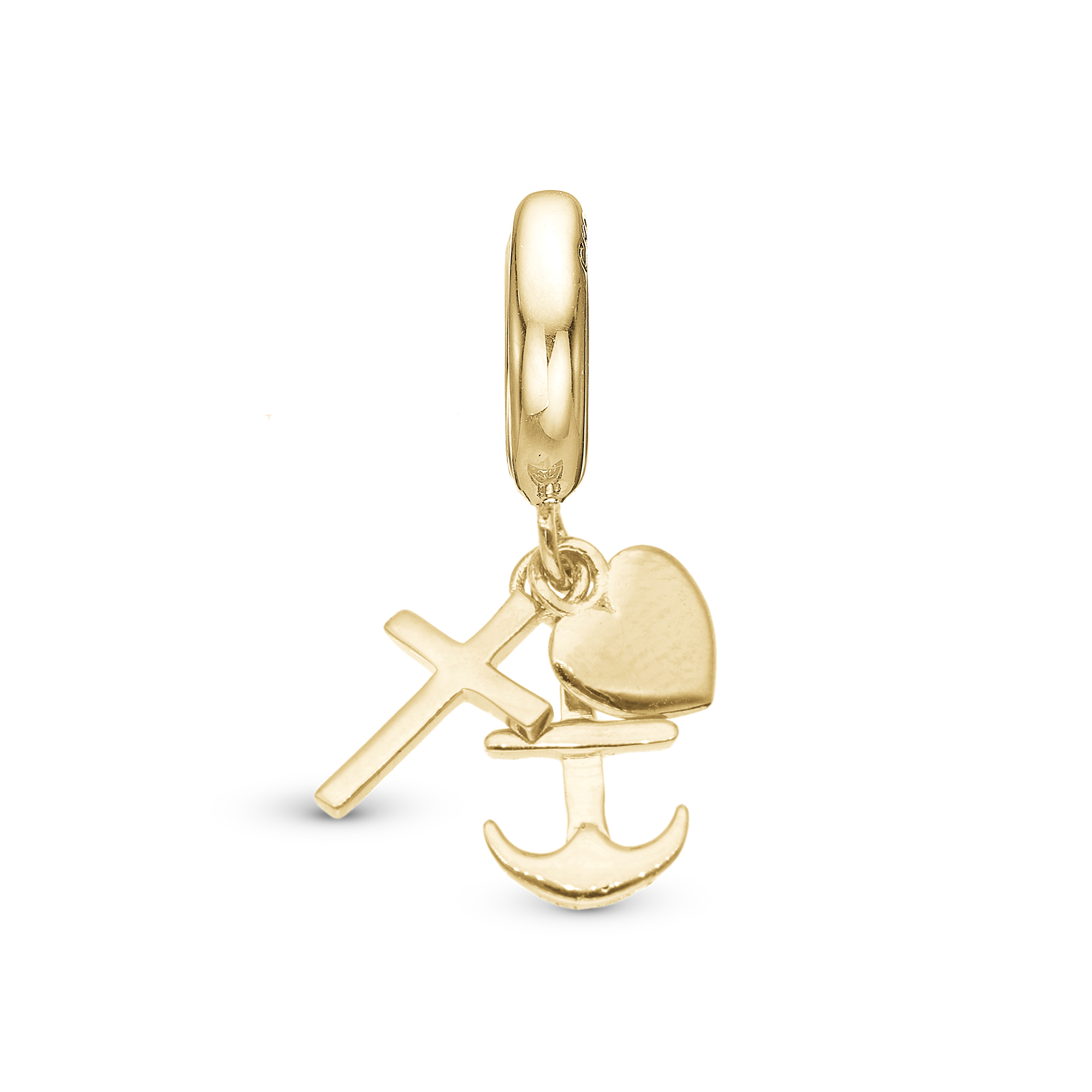 Faith Hope and Love Hænger Charm 6 mm Til Armbånd - Blankpoleret Forgyldt Sterling Sølv