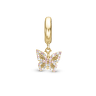 Sparkling Butterfly Hænger Charm 6 mm Til Armbånd - Blankpoleret Forgyldt Sterling Sølv m. 5 Pinke Cubic Zirkonia