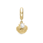 Clam shell Hænger Charm 6 mm Til Armbånd - Blankpoleret Forgyldt Sterling Sølv m. 1 Ferskvandsperle