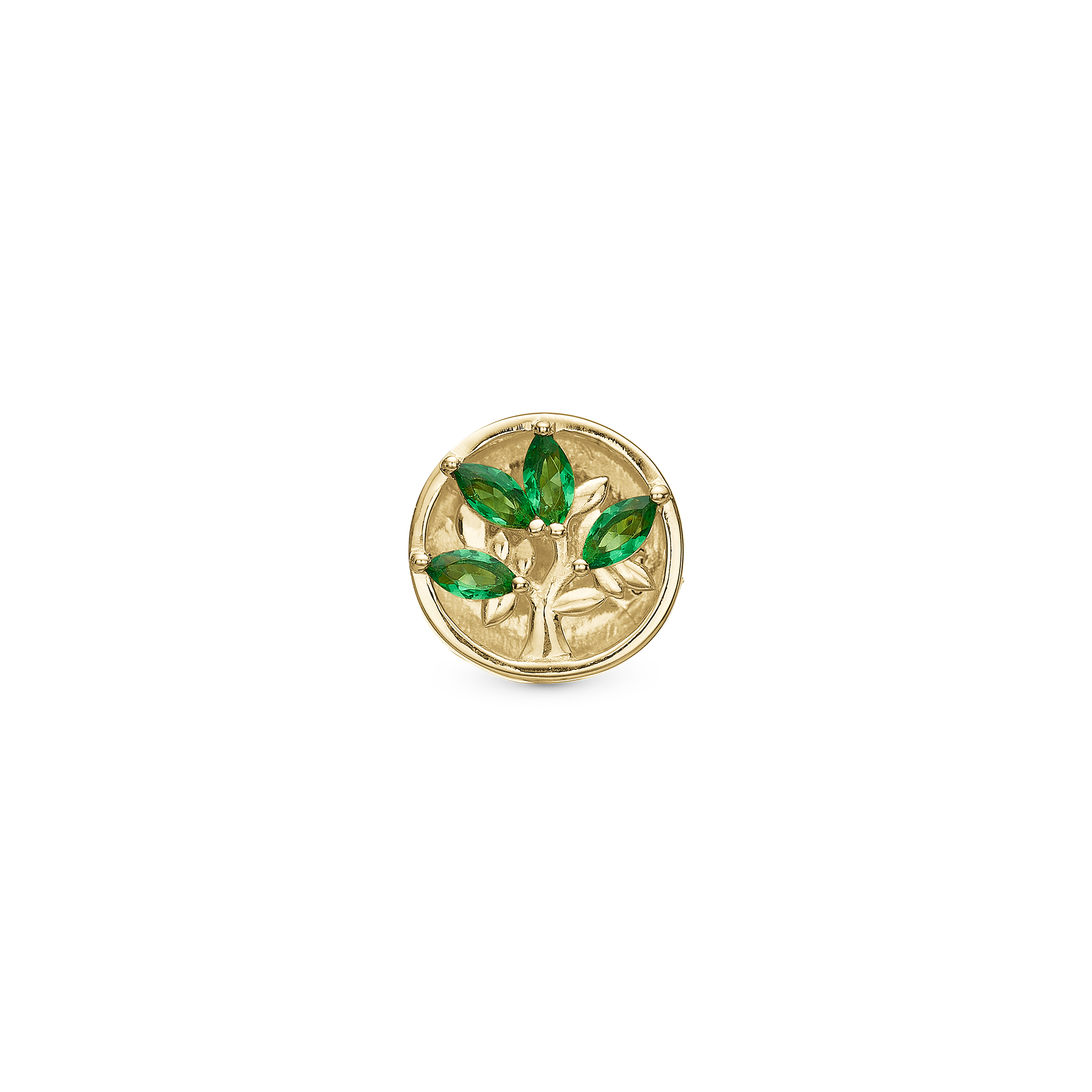 Smykket "Tree of Green Life" er en kraftfuld symbolisk repræsentation. Livets træ er prydet med fire grønne cubic zirconia sten, der fungerer som blade, symboliserende vækst, helhed og harmoni. Bagpå smykket er indgraveret med ordene "Family Love", hvilket understreger betydningen af familiens kærlighed og forbindelse. De søde små udskårne hjerter langs siden af smykket tilføjer en ekstra kærlig detalje. Dette smykke er en hjertevarmende påmindelse om familiens betydning og evige kærlighed og vil være et værdsat symbol på familiebånd og kærlighed.
