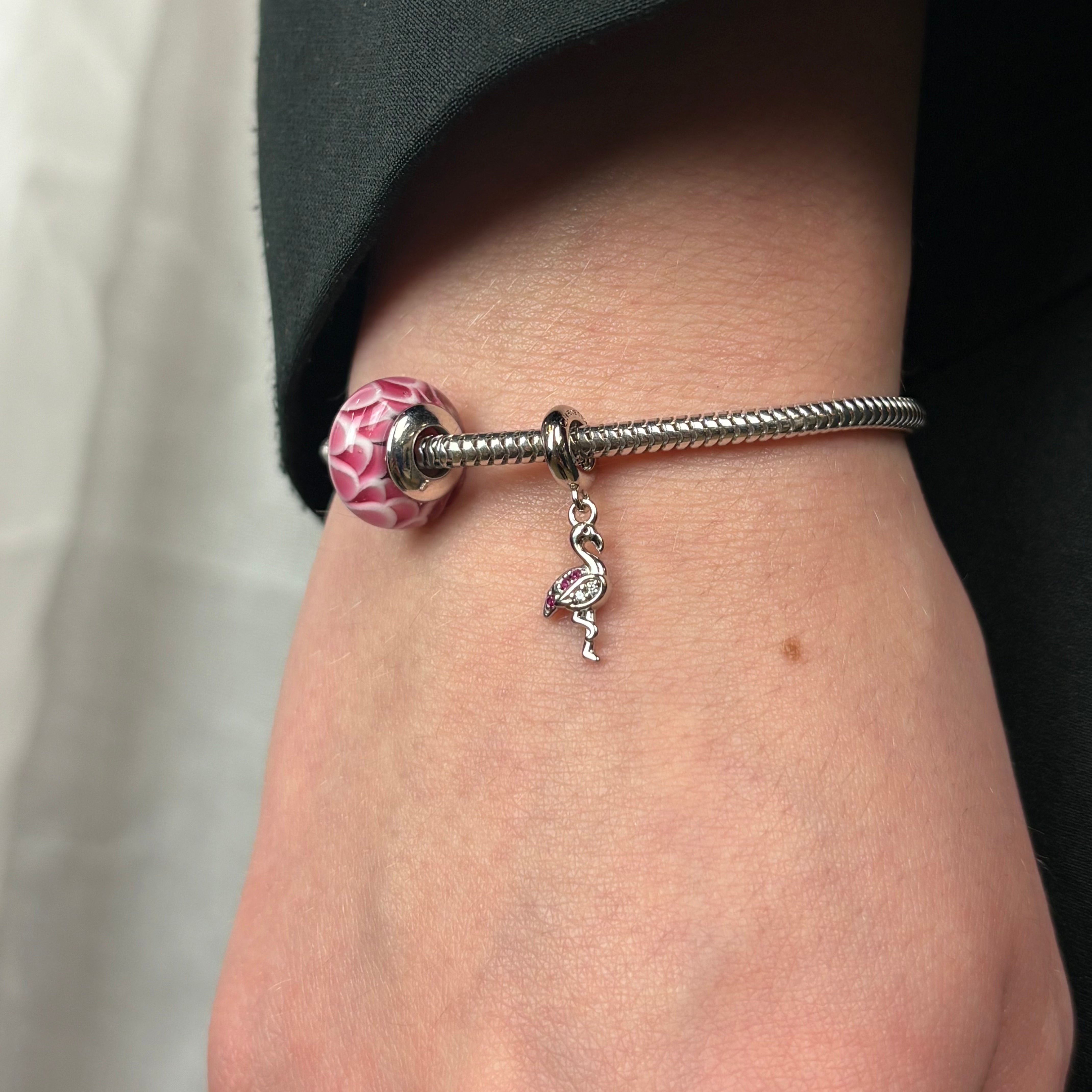 Flower Globe - Charm 4 mm Til Armbånd - Glas Sterling Sølv