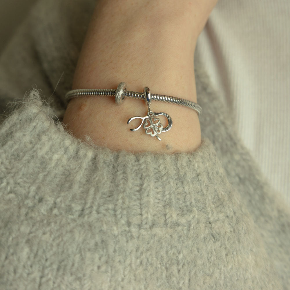 Lucky - Hænger Charm 4 mm Til Armbånd - Blankpoleret/Mat Sterling Sølv