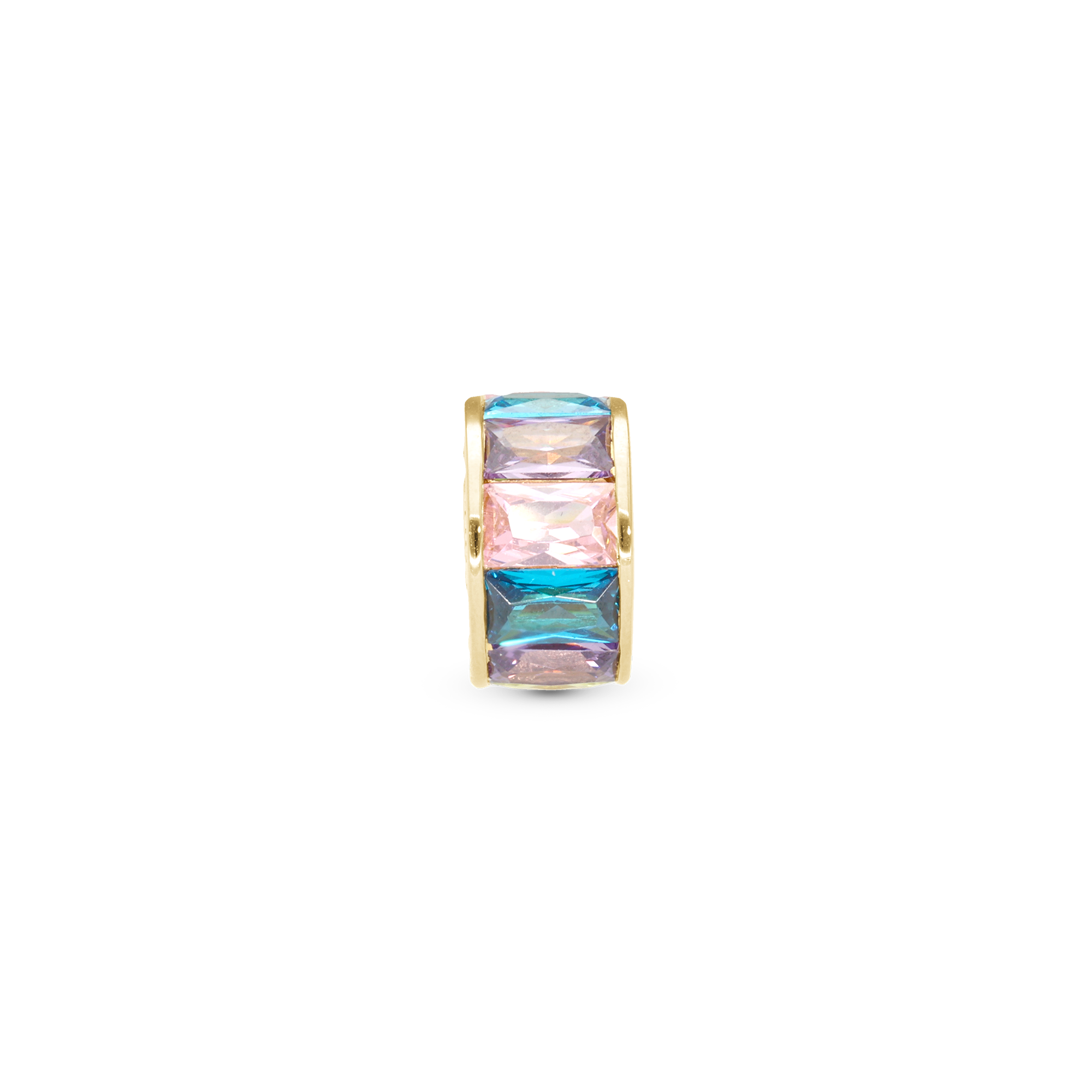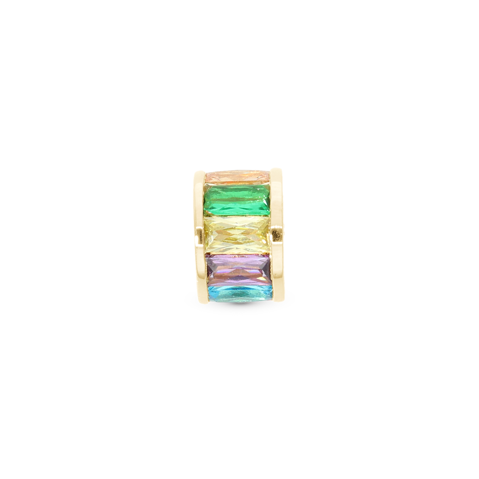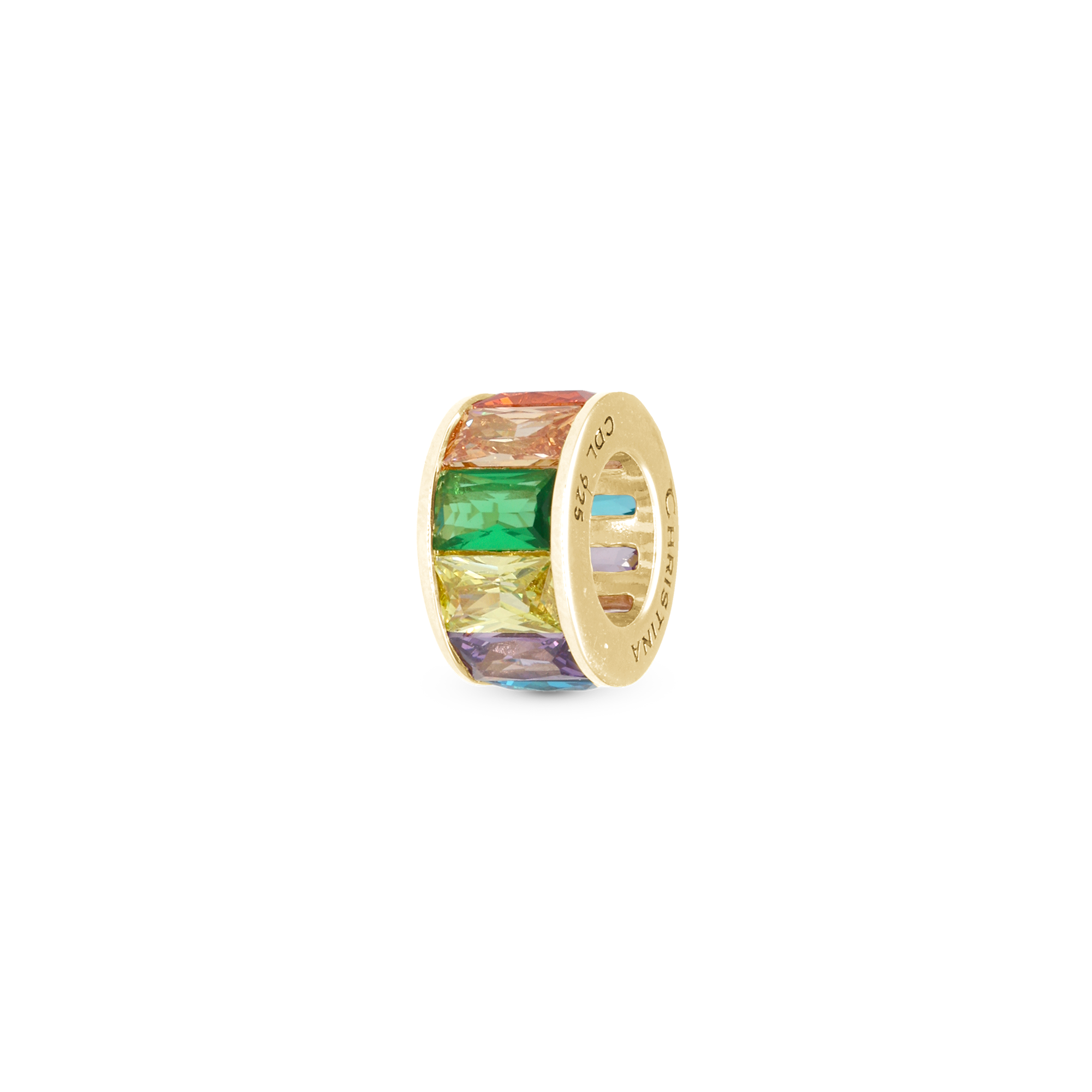 Multi color Baguette Charm 6 mm til Classic Læderarmbånd - Blankpoleret Forgyldt Sterling Sølv m. 10 Multi color Cubic Zirkonia