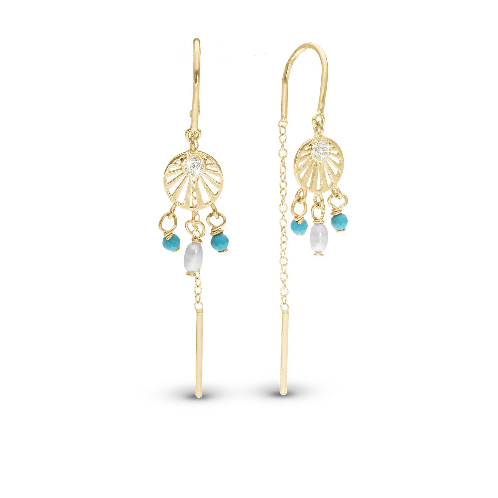 Ocean Sunset Hænge Øreringe - Blankpoleret Forgyldt Sterling Sølv m. 18 Hvide Cubic Zirkonia