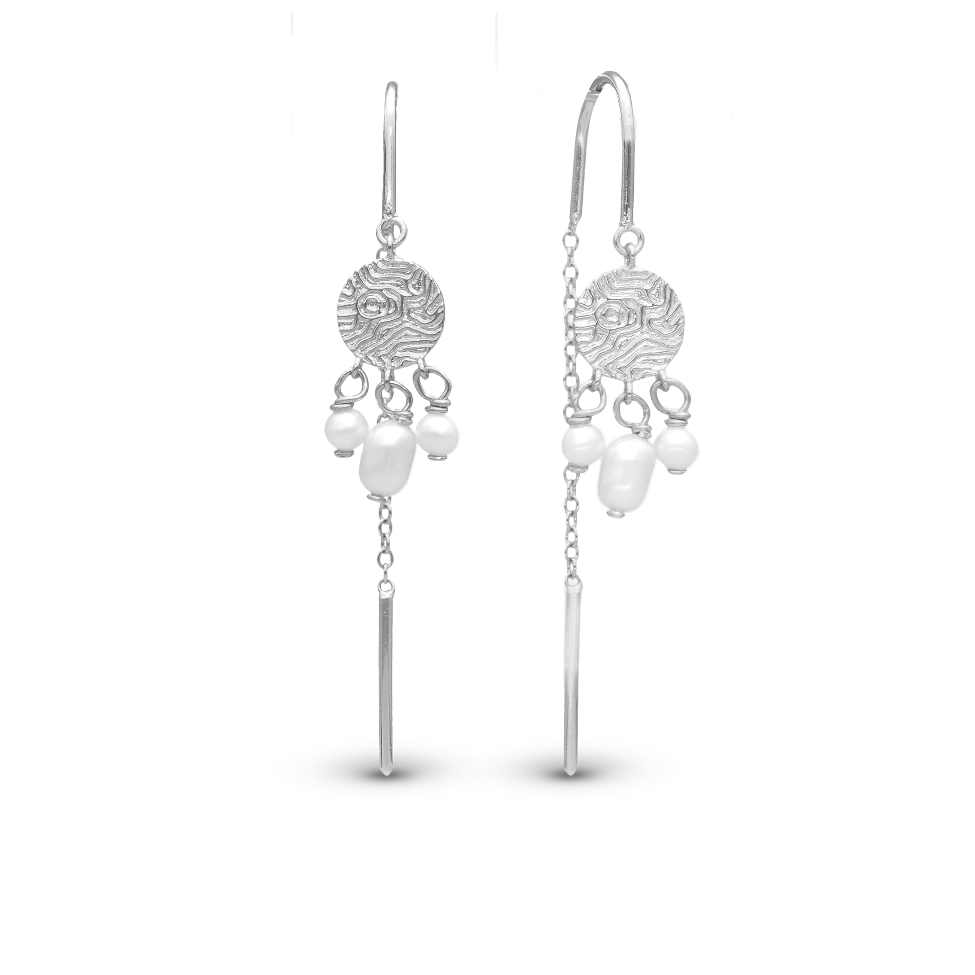 Long Dazzling Imprint Hænge Øreringe - Blankpoleret Sterling Sølv m. 6 Hvide Ferskvandsperler