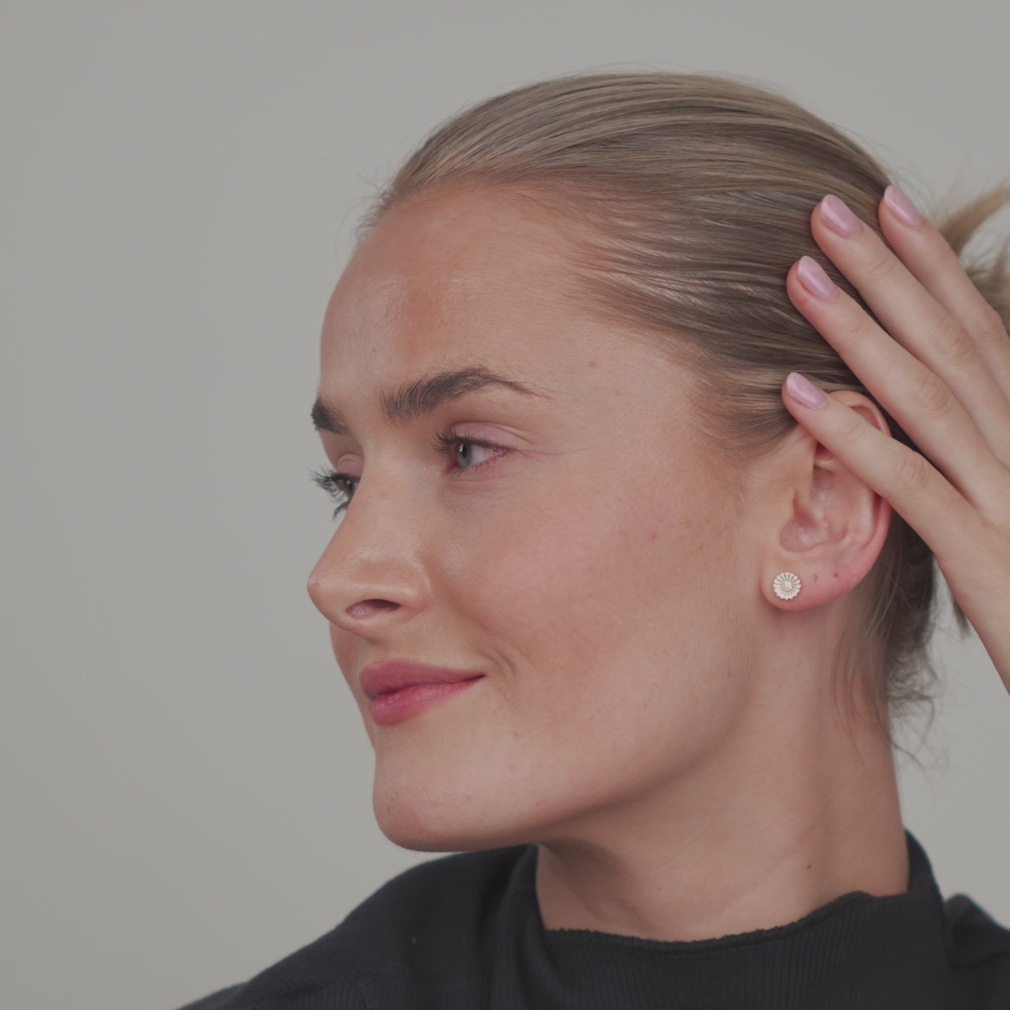 Marguerite CZ 8mm Ørestikker - Forgyldt Sterling Sølv m. 14 Hvide Cubic Zirkonia