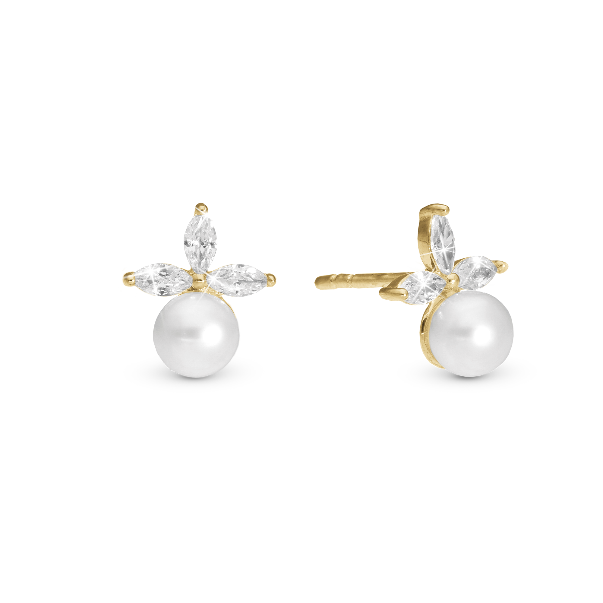 Pearl Lotus Ørestikker - Blankpoleret Forgyldt Sterling Sølv