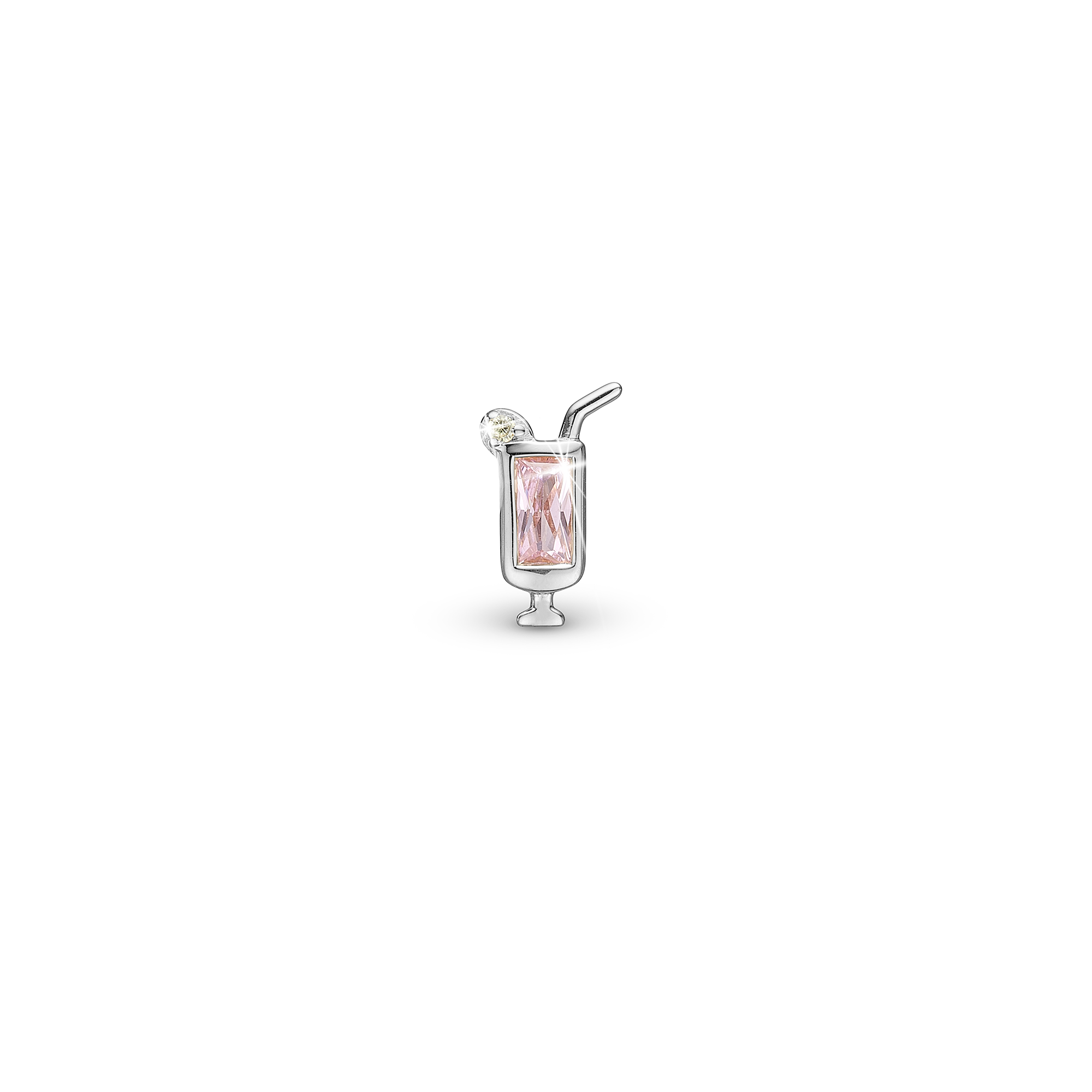 Inspireret af sommerlige drinks med en smuk lysserød baguette cubic zirconia. Søde detaljer i form af et sugerør og en citron på glasset. Den lyse og glade farve symboliserer sjov, forfriskning og livsglæde. Med denne drinks-ørestik kan du tilføje et strejf af lethed og festlighed til dit outfit.