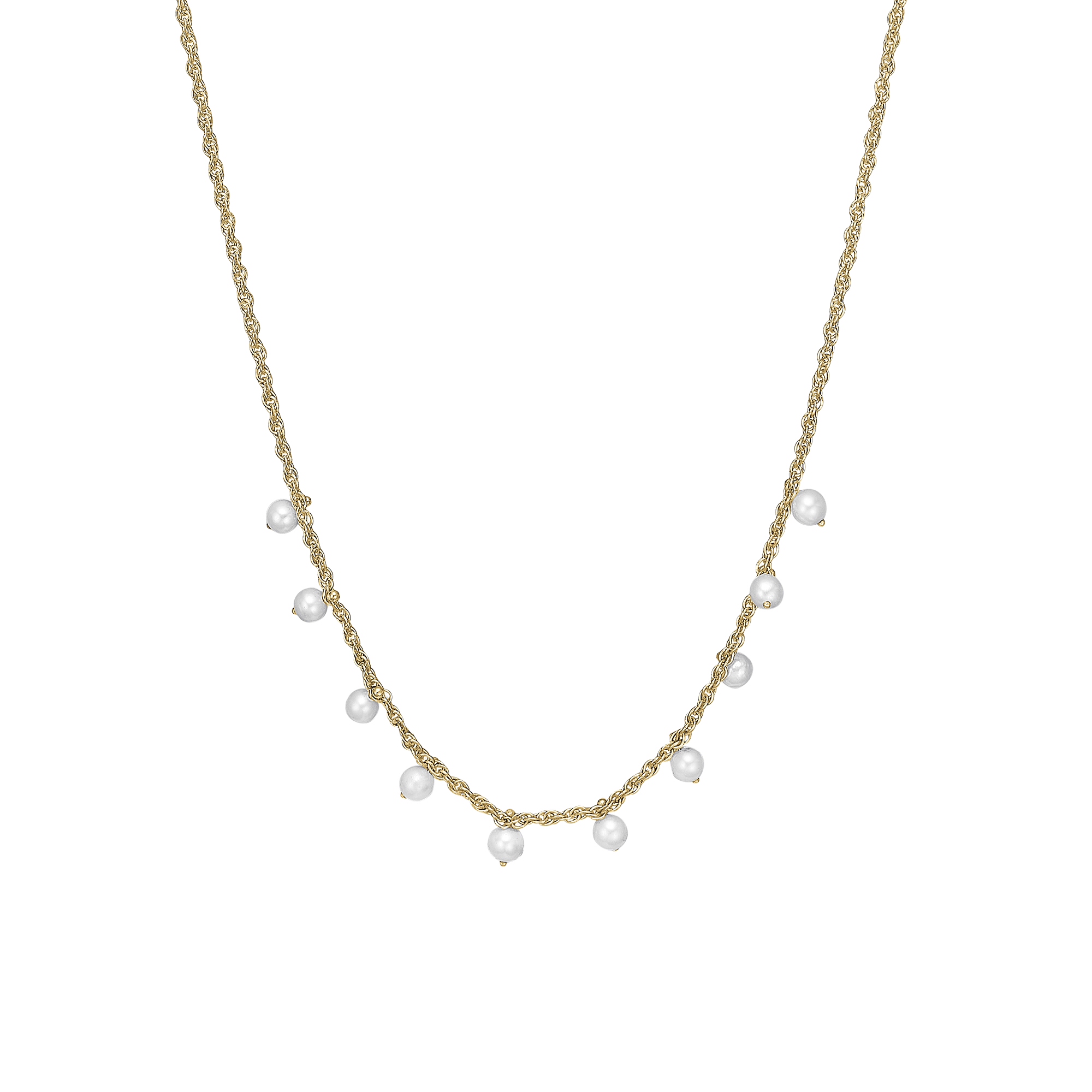 Dangling Pearls halskæden består af smukke, små ferskvandsperler, der hænger og skaber en bevægelse, når du bevæger dig. Smykket symboliserer lethed, elegance og ynde. Det minder os om at omfavne livets flygtige natur og finde skønhed i forandring og bevægelse. Hver perle repræsenterer et øjeblik, der flyder ind i det næste og skaber en harmonisk danse af elegance omkring din hals.