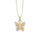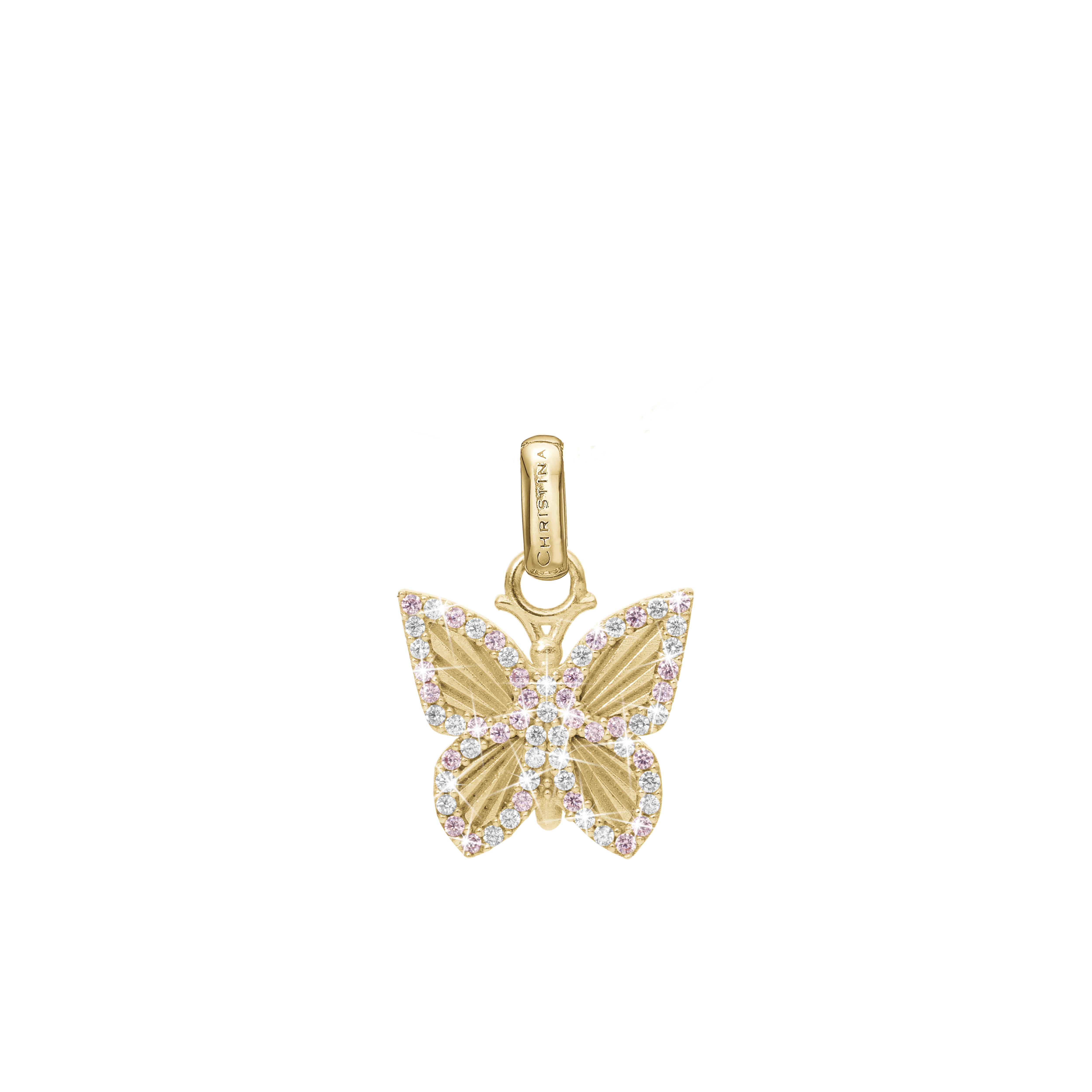 Pretty Butterfly Vedhæng - Blankpoleret Forgyldt Sterling Sølv m. 32 Pinke Cubic Zirkonia
