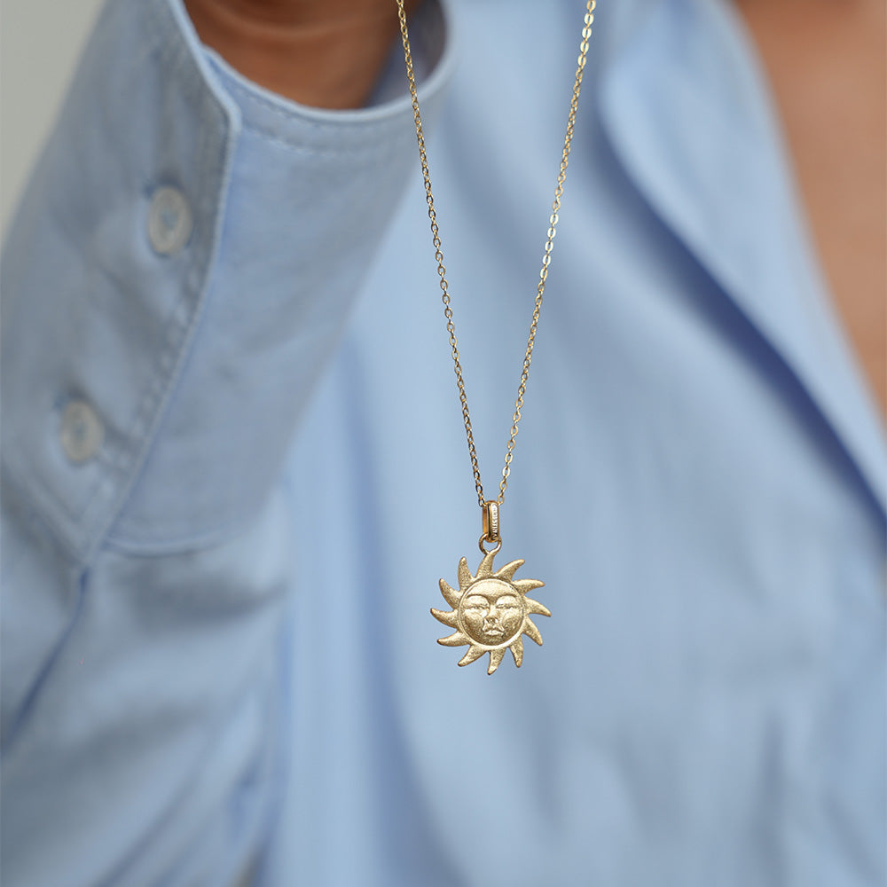Glowing Sun smykkeserien der ligner en glødende sol, symboliserer lys, energi, livskraft og positivitet. Solen kan også repræsentere håb, oplysning og en ny begyndelse, da solen står op hver dag og lyser mørket op.